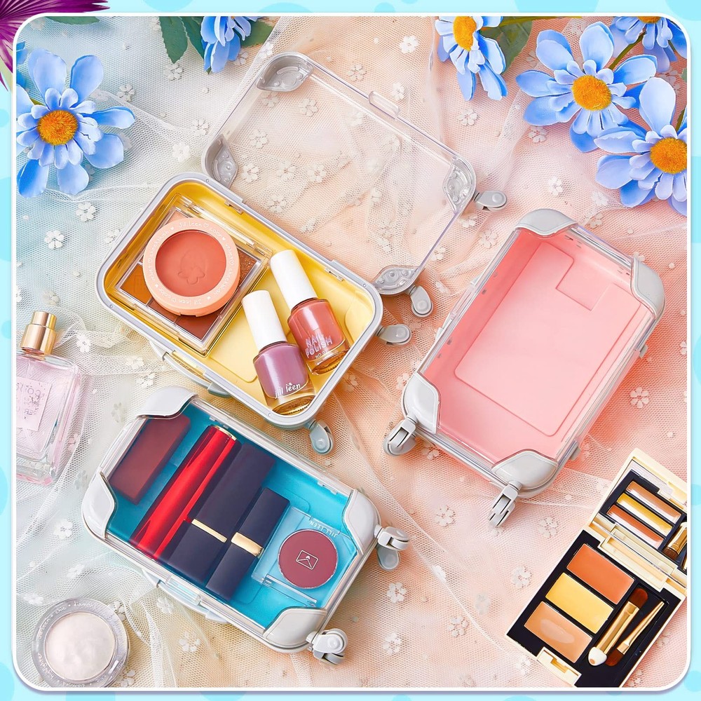 Features: Bright colors: The tiny suitcases come with 9 different colors, such as pink, blue, yellow and so on. The colors are bright, not dazzling, friendly to child, with a transparent cover and easy to use. Interesting gift: You can send the empty lash boxes to your son, daughter or the kids of friends and relatives. They will be very happy to receive this gift, which will make them like you more. Specifications: Material: plastic Color: as shown in the pictures Size: about 9.5 x 5 cm/ 3.74 x 1.97 inches Height: about 22 cm/ 8.66 inches Package includes: 12 x Plastic mini suitcase Notes: Manual measurement, please allow slight errors on size. The color may exist a slight difference due to different screen displays. Considerate Design: the false eyelashes packaging box adopts up and down telescopic handle, rotatable roller, smooth and not stuck, simulation buckle and portable design, which looks like a real suitcase, full of fun Mini Size: the size of the mini trolley suitcase box is about 6.69 x 3.74 x 1.97 inches/ 17 x 9.5 x 5 cm, total height after pulling the lever is about 22 cm/ 8.66 inches, small in size, light in weight, suitable for storing small items, such as candies, small cosmetics, and small bracelets Reliable Material: the mini candy box is mainly made of plastic material, which will not hurt kids, with a transparent cover, easy to see the inside of the suitcase and can serve you for a long time Satisfy Your Large Needs: you will receive 12 pieces of plastic mini suitcases, with 9 colors, enough quantity and rich colors, which can meet the daily use and replacement of children, letting them stay happy Widely Applied: colorful and interesting miniature plastic rolling suitcases are very suitable for travel parties, birthday parties, bachelor parties, cruise parties, beach parties, etc. Pair them with your favorite small gifts to prepare souvenirs for your friends