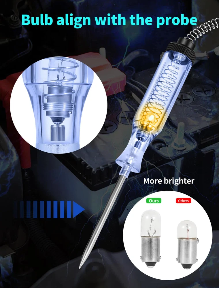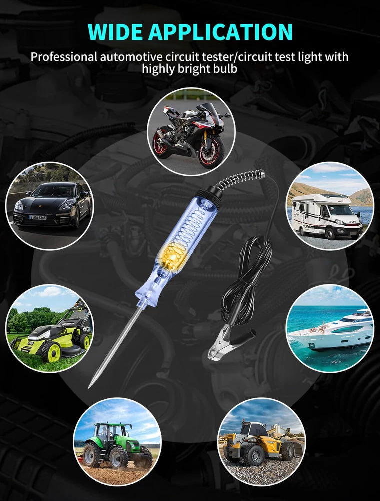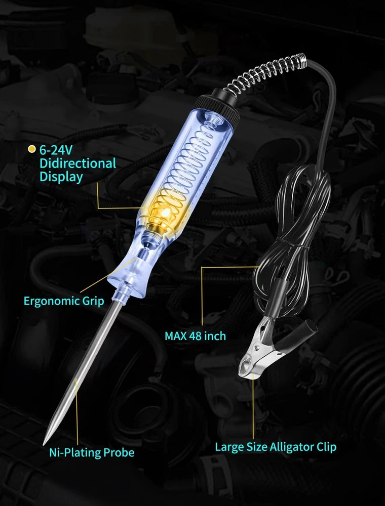Store New Arrivals Add to Favorite View Feedback Contact Test Light Automotive,Circuit Tester 6V-12V-24V,ABS Handle Material,Long Steel Probe Coating PU and Alligator Clip, for Continuity Voltage, for Sedan, SUV, RV, Truck (Black,1-Pack) Description Item model number VVT-E02 Style Tungsten bulb Power Source Corded Electric Color Black Product Dimensions 8 x 4 x 1 inches; 3.84 ounces Country of Origin China Item dimensions L x W x H 8 x 4 x 1 inches Brand SchuhRia Manufacturer GOCIA 【Wide Application】DIY automotive circuit tester/circuit test light with 6-24V DC voltage testing range, ideal for checking various vehicles electrical circuits, quickly check automotive headlights, taillights, turn signal circuits, faulty sockets, fuse connections, also for testing other 6-24v DC wirings and circuits. 【Quality Quality Bulb】High visibility bulb to indicate circuits’ signal, the brightness of the light will be different with the different measured voltages. 【Bidirectional Current Voltage Testing】You can attach the alligator clamp either to negative or positive ground, while use the probe to touch the other side. 【Quality Made】Sharp stainless steel probe for piercing wires, also for hard to reach tight areas. Insulation protective rubber tip protects you against electric shock. Constructed with high quality acetate fiber body, shatter-proof, more durable than others. Premium PU spring wire, heat insulation and oil resistance for safe use. 【Convenient Use】High quality wire offers more flexibility, lighter and more durable than normal cable wires, convenient for use and storage, along with large size alligator clip for easy one hand operation, will definitely improve your working efficiency. 【Brand Sevice】We don‘t wage a price war, but only continue to provide quality products to customers and guarantee stable quality. Product Description Sharp Ni-Plating probe Highly Quality Bulb 12V-24V Bulb align with probe Anti-pull spring 48inch Soft cord,Longer than others Ni-Plating Alligator Clip Circuit Testing Connect the alligator clip to the ground,use the probe to touch wires or fuse to diagnose short circuit or defectivefuse The body of the circuit tester is made of high-quality ABS, which is more durable, more resistant to fall than ordinary tester. Professional circuit 12-24V tester designed for car electrical circuits,automotive battery,battery charging systems,ignition systems,which is a must have tool for any automotive engineer ,electronic engineer or circuits DIY . ABOUT US We offer the best prices around on high quality products. Our E-store includes media such as books, movies, music and games while offering electronics, toys, sporting apparel, clothing, tools, general home, garden items and more. SHIPPING We are always working hard to ensure your package arrives as soon as possible. Please understand that some factors like weather, high postal traffic, and the performance of shipping companies are outside of our control. We offer free shipping to the lower 48 states and ship within 2 business days of payment, usually sooner. We do not accept P.O. Boxes. Please provide a physical address. RETURNS We offer a 30-Day Return Policy on items which you are not completely satisfied with. You have the option for a full-refund or an exchange of the item. No returns are available on items shipped outside of the USA. PAYMENT We accept PayPal. CONTACT US This page content is yet to come Please ad us to your favorite seller and visit again later Thank You CUSTOMER SATISFACTION We try our very best to make sure every customer is completely satisfied. If there's a problem, message us! We're happy to help.