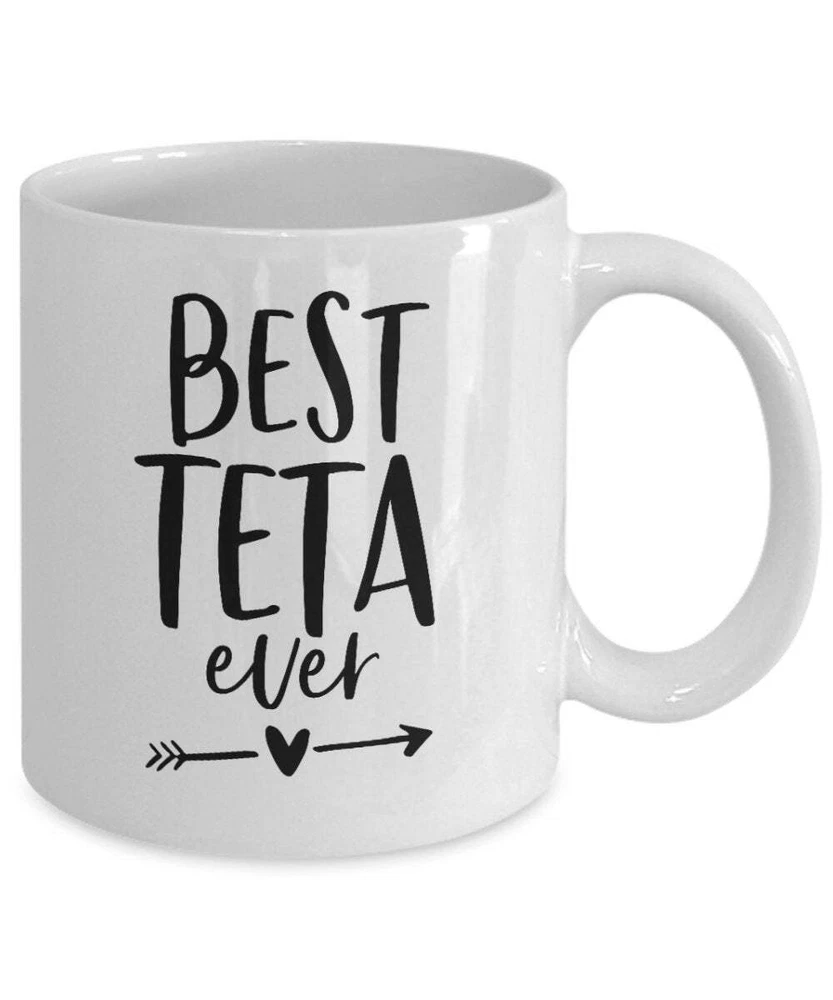 Teta Christmas Gift For Teta Best Teta Ever Coffee Mug Cup Gift Mug Product Details.. This high quality 11oz. ceramic white mug has a premium hard coat that provides crisp and vibrant color reproduction sure to last for years. Perfect for all hot & cold beverages. The highest quality printing possible is used. It will never fade no matter how many times you wash it. Material: 100% Ceramic. Print both sides. Dishwasher and Microwave Safe. High Gloss + Premium White Finish. Printed in the U.S.A. Personalized & Custom. We support personalized and custom mug to add custom, when placing an order, you can add notes to the "order note" in shipping address section. Also you can contact us directly via message. Shipping Info. Ready to ship in 1 to 2 business days, All products are made-to-order and proudly printed in the United States. Shipped by USPS and DHL, You will receive your order in 5-7 days. Replace & Refund. All products are defective during shipping broken, chipped will be replaced free of charge. You are not satisfied with the product, we will refund 100% money to you. If any other issues arise, please do not hesitate to message, we would be more than happy to assist you.