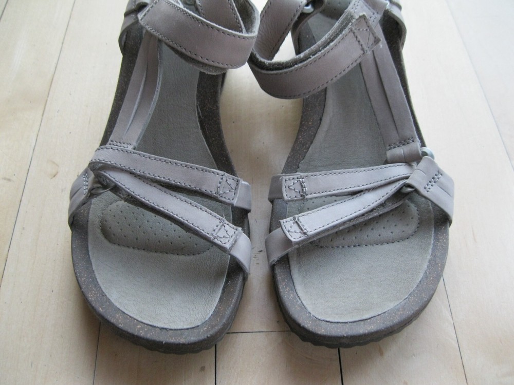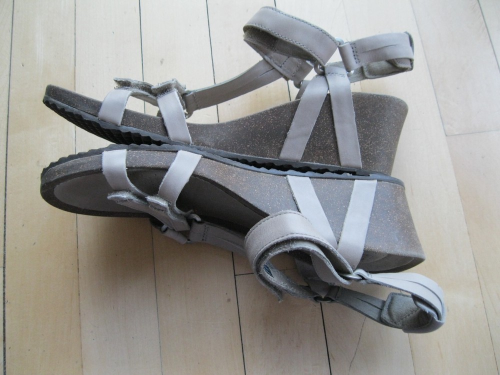 Teva Ysidro Universal Leather Open Toe Strappy Comfy Wedge Sandals Taupe Women 8 Retails: $149 Website Description: A sleek, feminine take on the iconic Universal, this light, comfortable wedge sandal features fully adjustable leather straps for the absolute perfect fit. Easy hook-and-loop closure comes on and off quickly and gets the fit just right Cork wedge midsole delivers the kind of comfort you can walk all day in Lux leather wrapped footbed is exceptionally soft and comfortable under foot Poron® foam footbed pods delivers cushioned comfort that won’t pack out Rubber outsole Gentle reminder, please c ontact me if there is ever an issue . If I don't know there is a problem, I can't fix it.