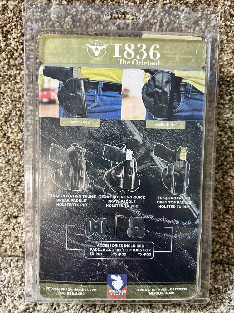 Texas 1836 Holster for 9mm/.40cal S&W, Springfield, Ruger, etc, - RH TX-PDX-1010 FITS: S&W M&P Shield 9/40/45 Ruger LC9/SR9 Springfield XDs Kel-Tec PF9 KAHR CW/P/PM Series Many other single- stack 9mm/.40 Pistols