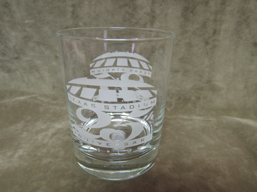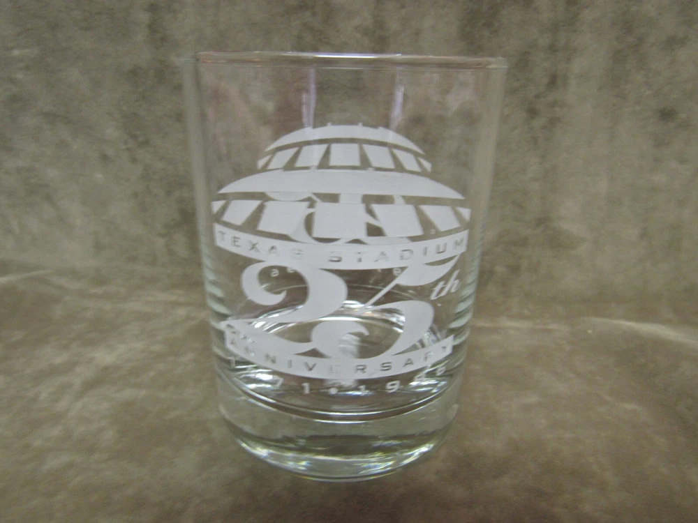 Texas Staduim Irving Clear Etched Glass Tumbler 25th Anniversary in 1999