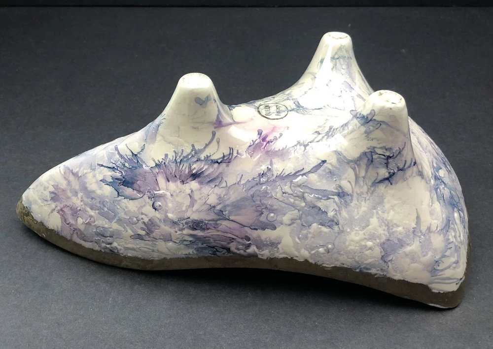 BEAUTIFUL QUEEN POTTERY TEXTURED ART FOOTED TRIANGLE BOWL.