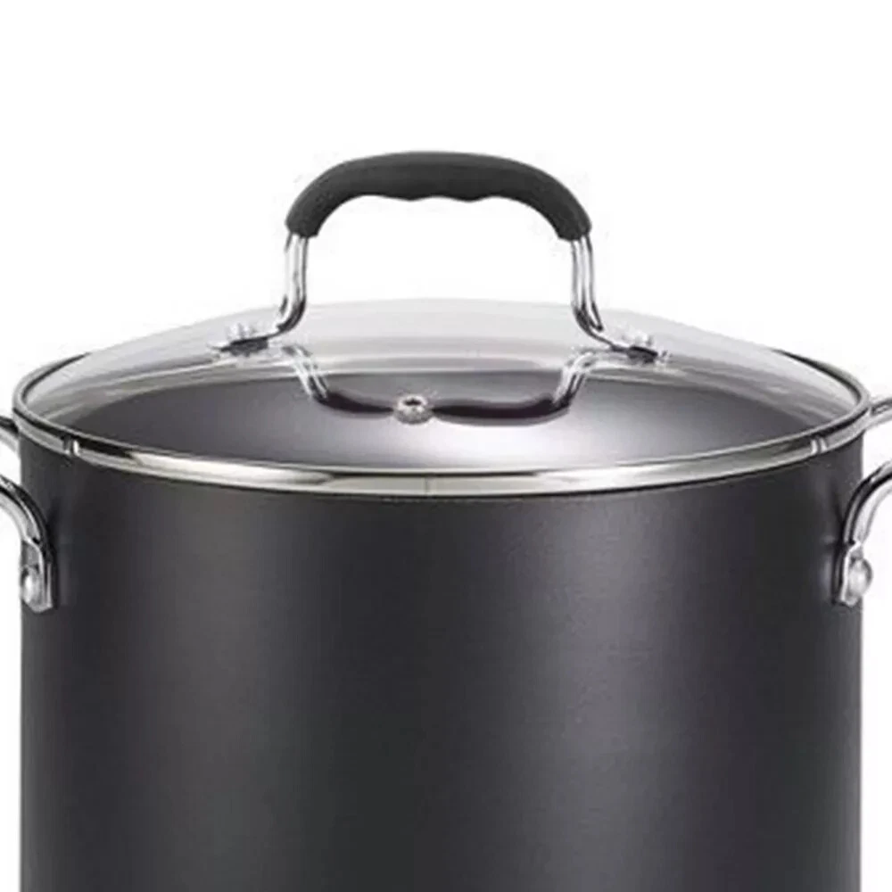 Highlights 12qt stock pot is perfect for stocks, stews and much more Made from durable aluminium for even heating Features riveted handle and soft-grip handle for comfortable cooking Includes a tempered glass lid for easy monitoring of your dishes Description Perfect for the cooking aficionado, this 12-Quart Stock Pot from T-Fal will help you make all of your family favorites, from homemade stocks to soups and so much more. Made from aluminum to provide heat conductivity, this nonstick stock pot comes with a tempered glass lid that lets you easily monitor your food, while covered handles make for a more comfortable cooking experience. Complete with nonstick coating on the interior and exterior for easy cleanup, this dishwasher-safe stock pot makes a great staple in your kitchen. Specifications Number of Pieces: 2 Weight: 4.6 Pounds Finish: Shiny, Non-Stick Features: Vented Lid, Nonstick, Extra-Deep Cooking Body, Non-Slip Handle, Tempered Glass Lid, Soft-Grip Handle, Riveted Handle, Clear Glass Lid, Even-Heating Baking Cooking Surface: Nonstick Handle Material: Aluminum, Plastic Lid Material: Tempered Glass, Glass Capacity (Volume): 12 Quart Includes: Lid Protective Qualities: Heat-Resistant Number of cavities: 1 Pot or pan diameter: 9.5 Inches Cooktop compatibility: Smooth Surface Non Induction, Electric Coil, Gas Material: exterior surface: Aluminum Care & Cleaning: Do Not Use Abrasives, Dishwasher-Safe, Oven-Safe up to 350 Degrees, Oven-Safe, Do Not Microwave, Freezer-Safe