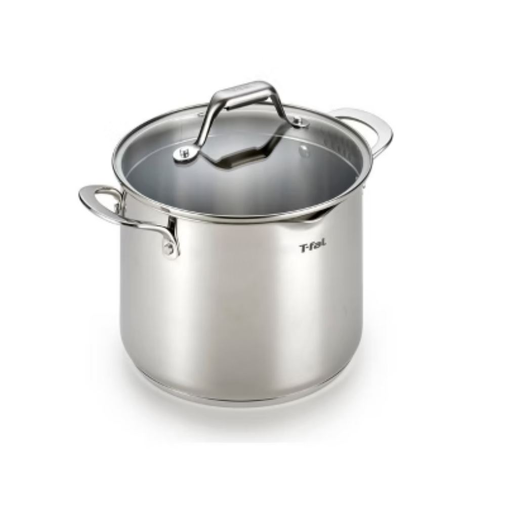 Description T-fal stainless steel stockpot featuring a convenient drain and pour lid for easy, mess-free straining is for moments when you're entertaining, tailgating or simply want leftovers. The handles allow you to get a strong grip on your heaviest haul of pasta. Strong and sturdy, it won't shake while you simmer chili (and the lid rests securely). We've also printed measurements on the interior, which means fewer dishes and more time relaxing. About Us: For over 60 years, T-fal has been at the forefront of kitchen innovation, starting with the world’s first non-stick cookware. Our brand was built on the idea of making every day cooking easier, faster, and more enjoyable. From intuitive design to time-saving features, T-fal delivers reliable performance for home cooks who want great results without the hassle. Designed for those who value simplicity and innovation, T-fal helps you cook with ease and confidence, every day. highlights Versatile Convenience: This stock pot has a tight-fitting lid that features straining holes to drain liquids effortlessly. Even Heating: Durable stainless steel (inside and out) for sturdy construction, fast heat-up and warp-resistant base distributes heat quickly and evenly Handles, Lid & Care: Ergonomic handles for a comfortable, secure grip; Vented glass straining lid; dishwasher-safe no fuss, no stress; Ideal for gas and electric cooktops and induction-compatible Easy to Clean: Dishwasher-safe for effortless cleanup no fuss, no stress.