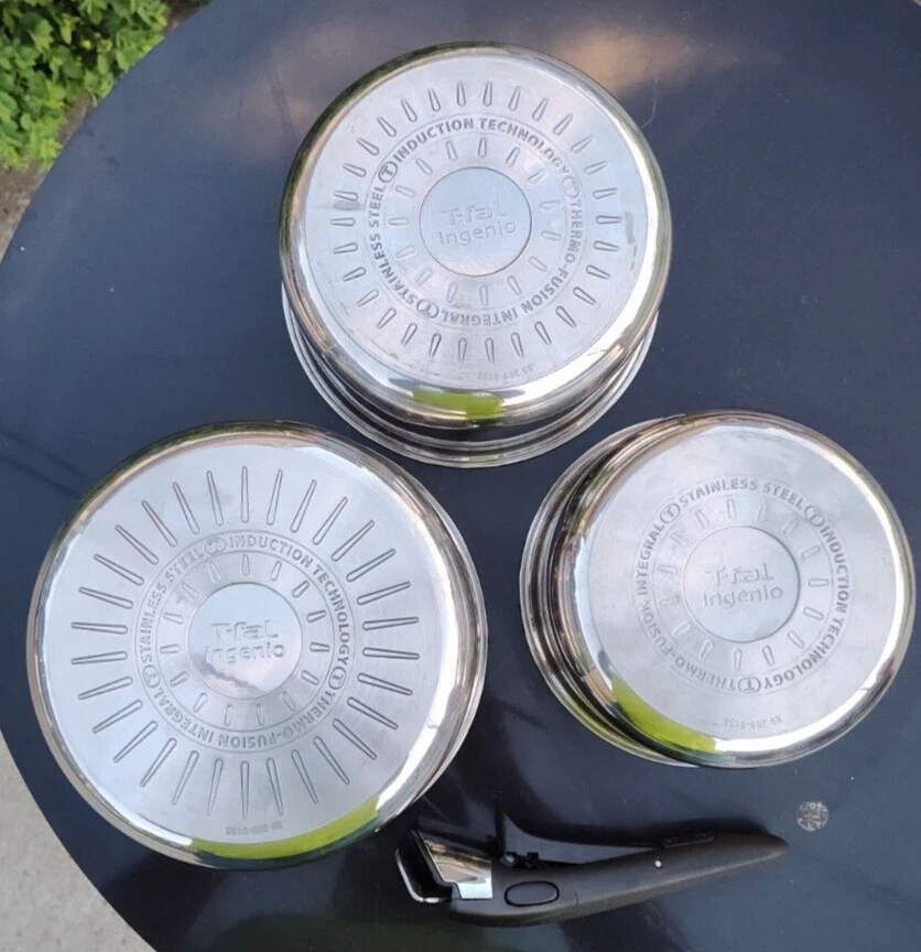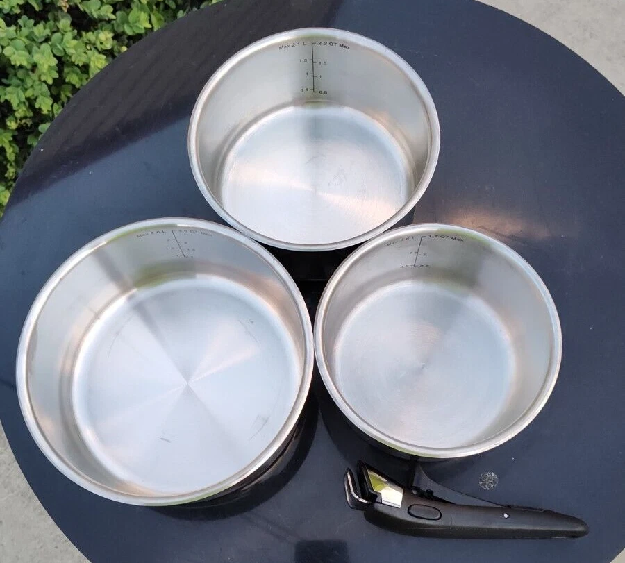 Introducing the T-fal Ingenio Stainless Steel Cookware Set, a four-piece set that includes 1qt, 2qt, and 3qt saucepans, perfect for induction, electric, and gas stoves. The round-shaped saucepans are made of high-quality stainless steel material, ensuring durability and heat resistance up to 500°F. This set is dishwasher safe, making it easy to clean and maintain. The silver color and sleek design add a touch of elegance to any kitchen. With a weight of 1lbs 8oz, 1lbs 12oz, and 2.0lbs, the set is perfect for cooking up delicious meals. Get ready to cook like a pro with this amazing T-fal cookware set!