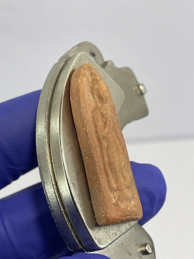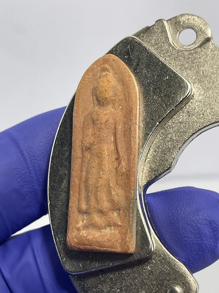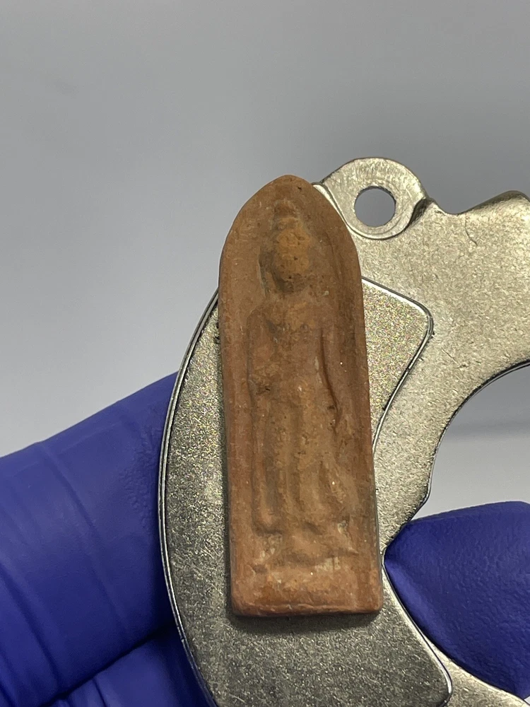 I do not know about this amulet who is the maker or which year ? The amulet was a gift to me from an old lady who came to Canada since 80’s and no longer can not taking care of this amulet. I do not know about this Amulet. The amulet is magnetic to the magnet The amulet size 34mm X 12mm X 6mm Thank you.