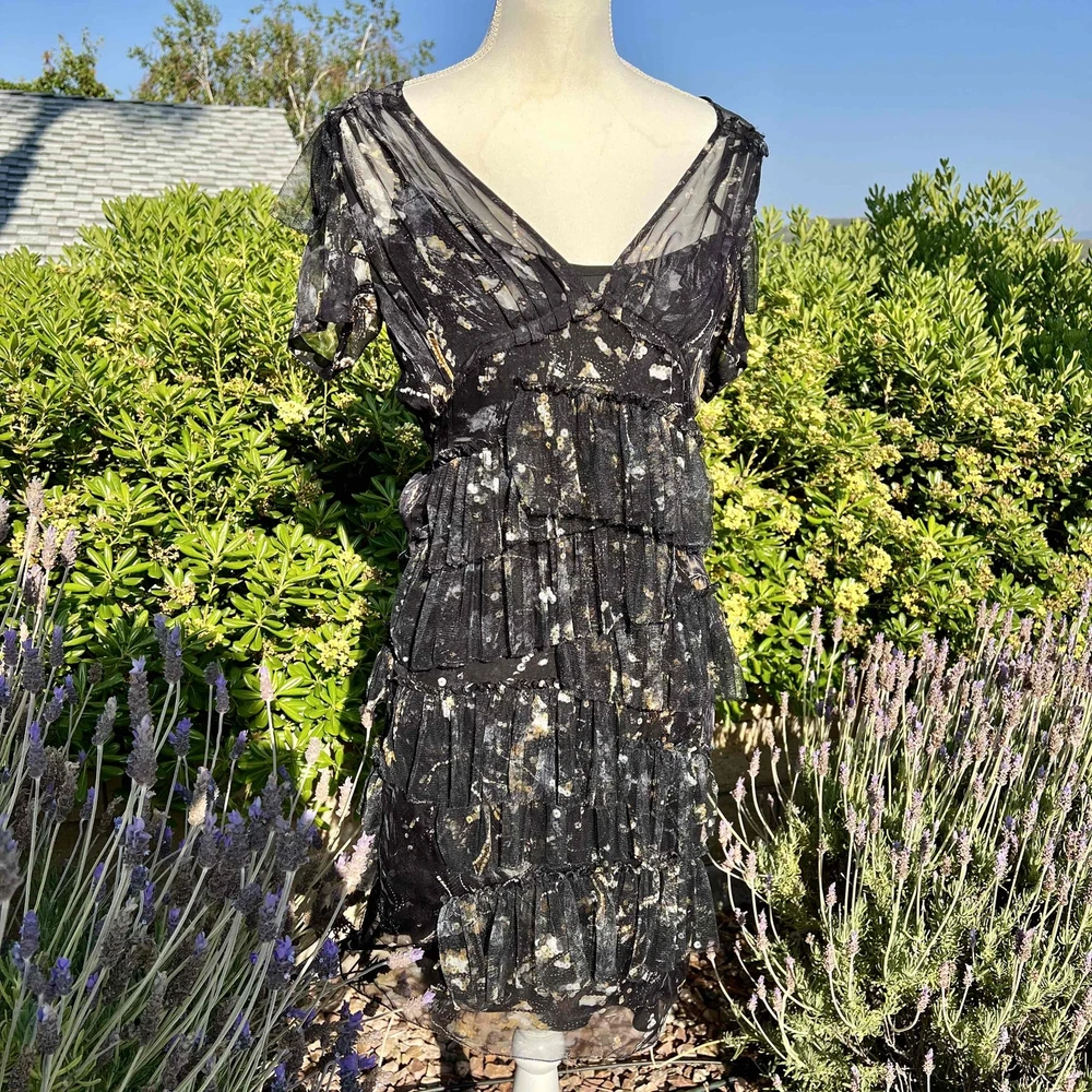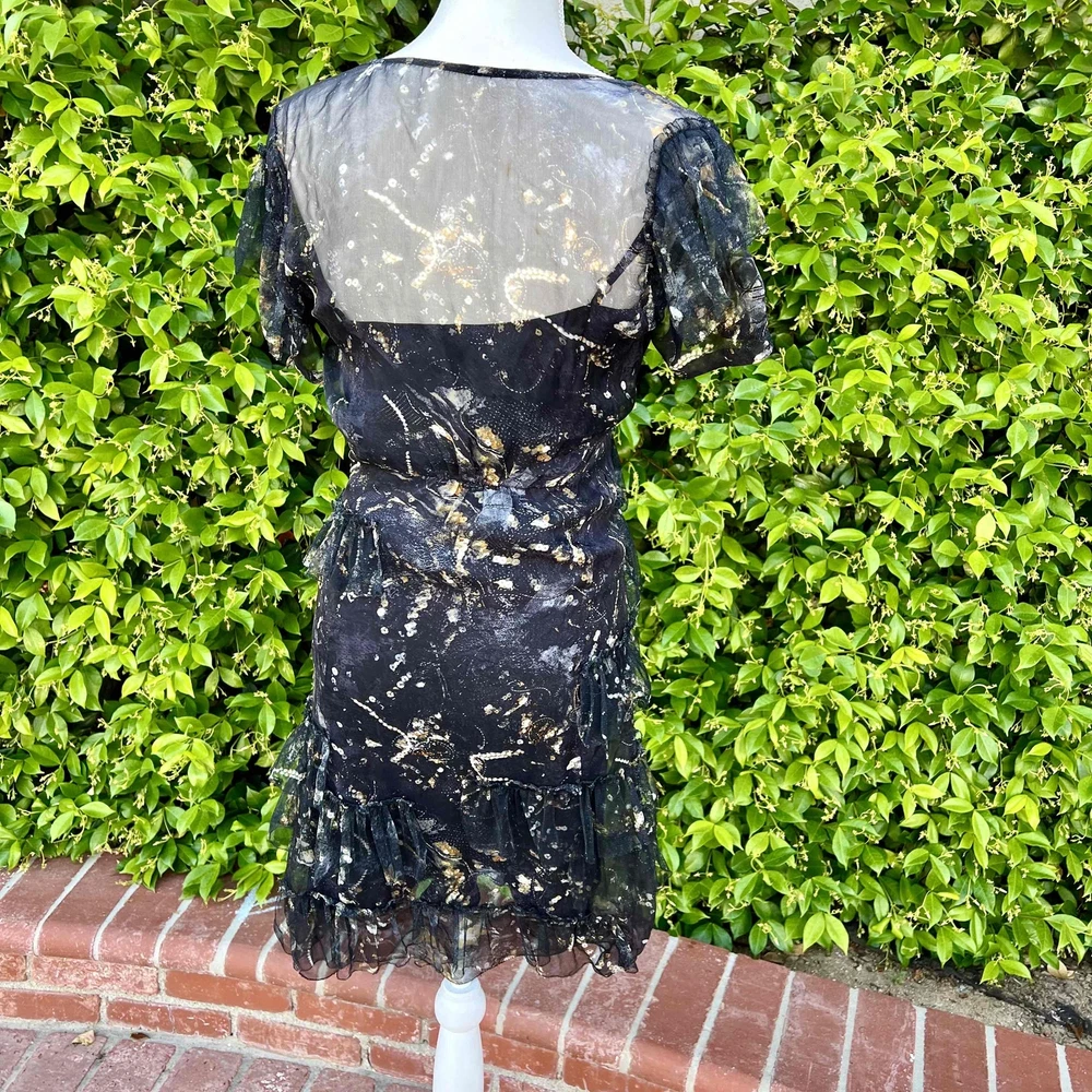 Thakoon Silk Floral Tiered Ruffle Dress Sheer Black Slip NWOT Size 4 Small