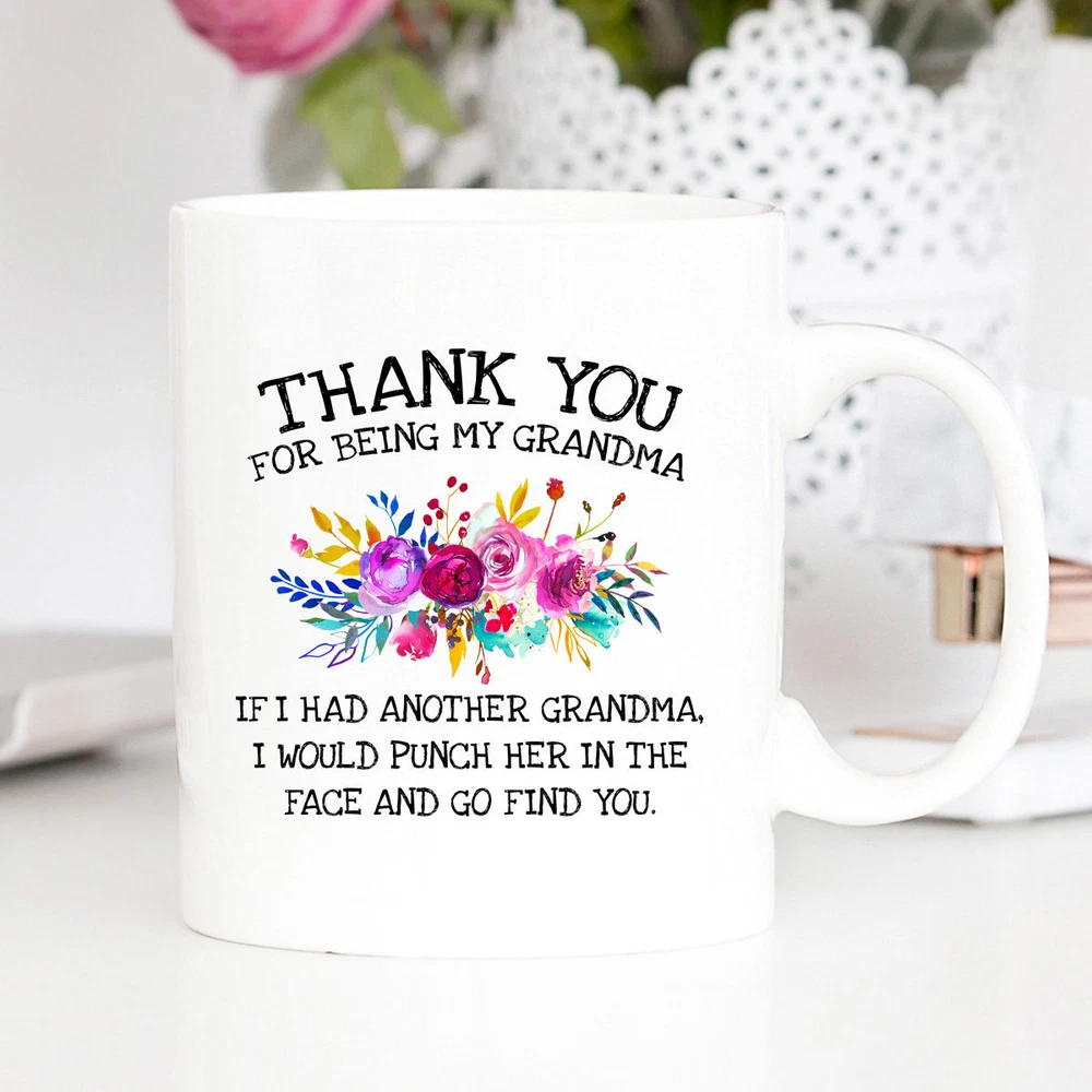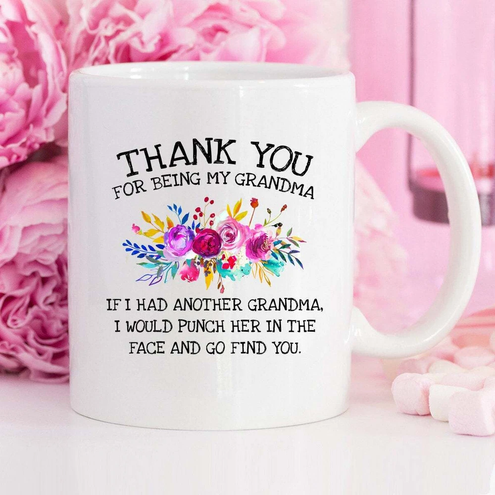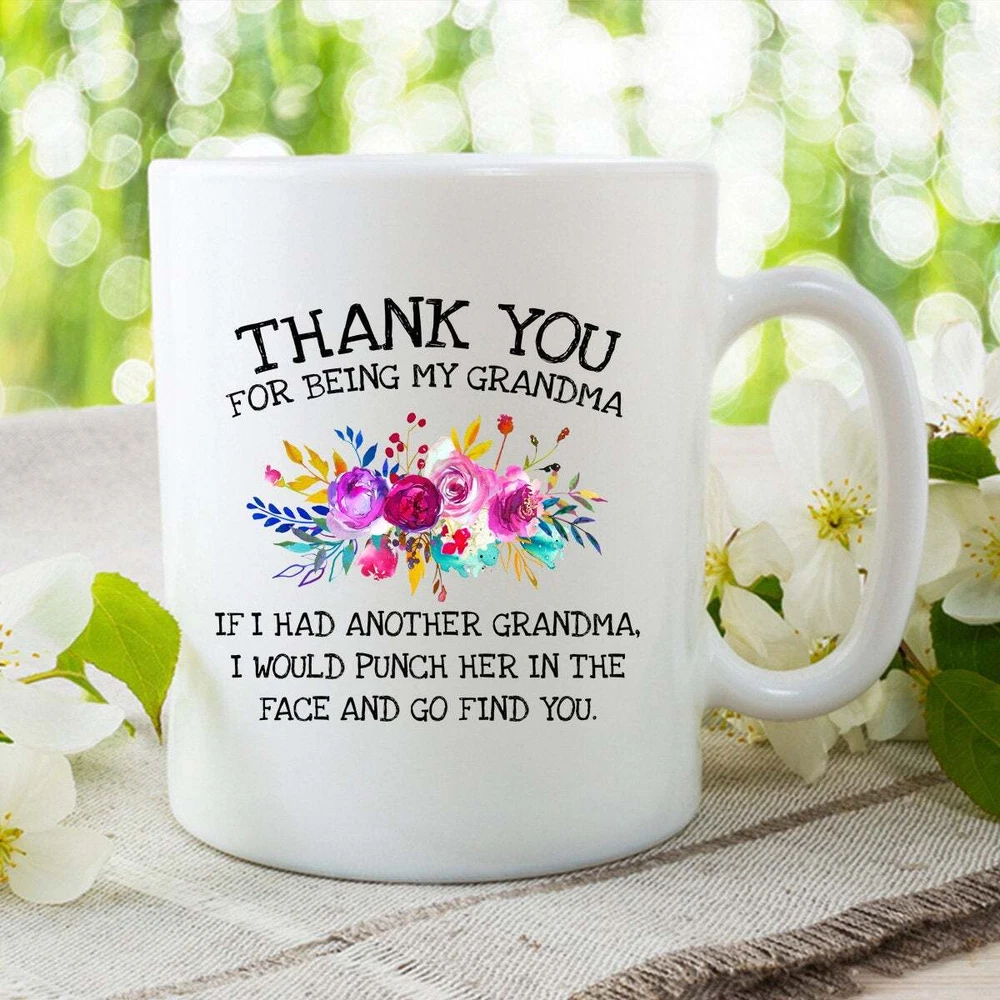 Thank You For Being My Grandma Funny Grandma Mug Grandparents Coffee Mug Product Details.. This high quality 11oz. ceramic white mug has a premium hard coat that provides crisp and vibrant color reproduction sure to last for years. Perfect for all hot & cold beverages. The highest quality printing possible is used. It will never fade no matter how many times you wash it. Material: 100% Ceramic. Print both sides. Dishwasher and Microwave Safe. High Gloss + Premium White Finish. Printed in the U.S.A. Personalized & Custom. We support personalized and custom mug to add custom, when placing an order, you can add notes to the "order note" in shipping address section. Also you can contact us directly via message. Shipping Info. Ready to ship in 1 to 2 business days, All products are made-to-order and proudly printed in the United States. Shipped by USPS and DHL, You will receive your order in 5-7 days. Replace & Refund. All products are defective during shipping broken, chipped will be replaced free of charge. You are not satisfied with the product, we will refund 100% money to you. If any other issues arise, please do not hesitate to message, we would be more than happy to assist you.