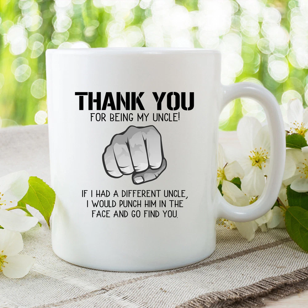 Thank You For Being My Uncle New Uncle Coffee Mug Uncle Coffee Mug Gift Funny Product Details.. This high quality 11oz. ceramic white mug has a premium hard coat that provides crisp and vibrant color reproduction sure to last for years. Perfect for all hot & cold beverages. The highest quality printing possible is used. It will never fade no matter how many times you wash it. Material: 100% Ceramic. Print both sides. Dishwasher and Microwave Safe. High Gloss + Premium White Finish. Printed in the U.S.A. Personalized & Custom. We support personalized and custom mug to add custom, when placing an order, you can add notes to the "order note" in shipping address section. Also you can contact us directly via message. Shipping Info. Ready to ship in 1 to 2 business days, All products are made-to-order and proudly printed in the United States. Shipped by USPS and DHL, You will receive your order in 5-7 days. Replace & Refund. All products are defective during shipping broken, chipped will be replaced free of charge. You are not satisfied with the product, we will refund 100% money to you. If any other issues arise, please do not hesitate to message, we would be more than happy to assist you.