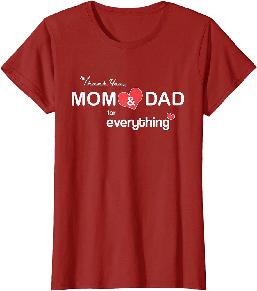 Welcome to Our eBay Shop Fast Shipping Hasslefree Returns Secure Payment Excellent Service Thank You Mom And Dad For Everything Love Gift Product Description All of our Ladies t-shirts are brand new and made to order. They are printed in our New York facilities with love and passion. We use various printing methods to ensure you the high quality, long lasting garments you or your loved ones deserve. We carry sizes from Small to 2XL in short sleeve women t-shirts (depending on the design). You can refer to "SPECS & SIZING" to get accurate information regarding the sizes of the garments we use. This design is also available and printed on different types of garments in our store.If you would like this graphic printed on a different type of garment than a short sleeve t-shirt, please make sure to check our store ! If you have any questions regarding this item or any other item we have for sale, do not hesitate to contact us. We answer all messages within 1 business day. SPECS & SIZING SHIRT CARE TIPS Wash inside out with cold water with similar colors using a gentle cycle. Tumble dry low or hang-dry Avoid using bleach and do not dry clean. PAYMENT We accept payment by any of the following methods: PayPal Please pay as soon as possible after winning an auction, as that will allow us to post your item to you sooner! SHIPPING Your order will be dispatched within 2 business days of receiving payment (Monday-Friday) with a tracking number. In the very unlikely event that your item is lost or damaged during post, then WE are responsible and will issue either a full refund or replacement. RETURNS If you are not 100% satisfied with your purchase, you can return the product and get a full refund or exchange the product for another one, be it similar or not. You can return a product for up to 14 days from the date you purchased it. Any product you return must be in the same condition you received it and in the original packaging. Please keep the receipt. Feedback * Your great positive feedback will be greatly welcomed! * If you have any problem when you receive the item, please contact us first, we'll do our best to resolve the problem!:) Copyright © 2022 | All Rights Reserved