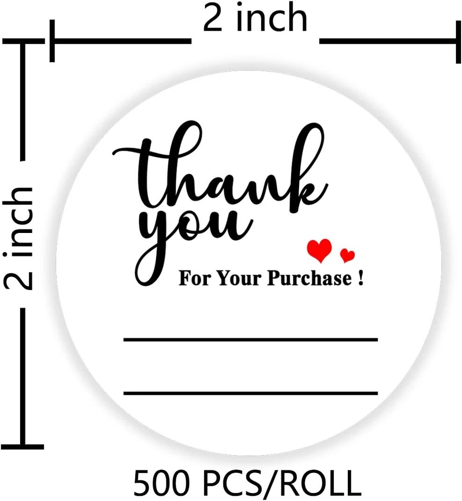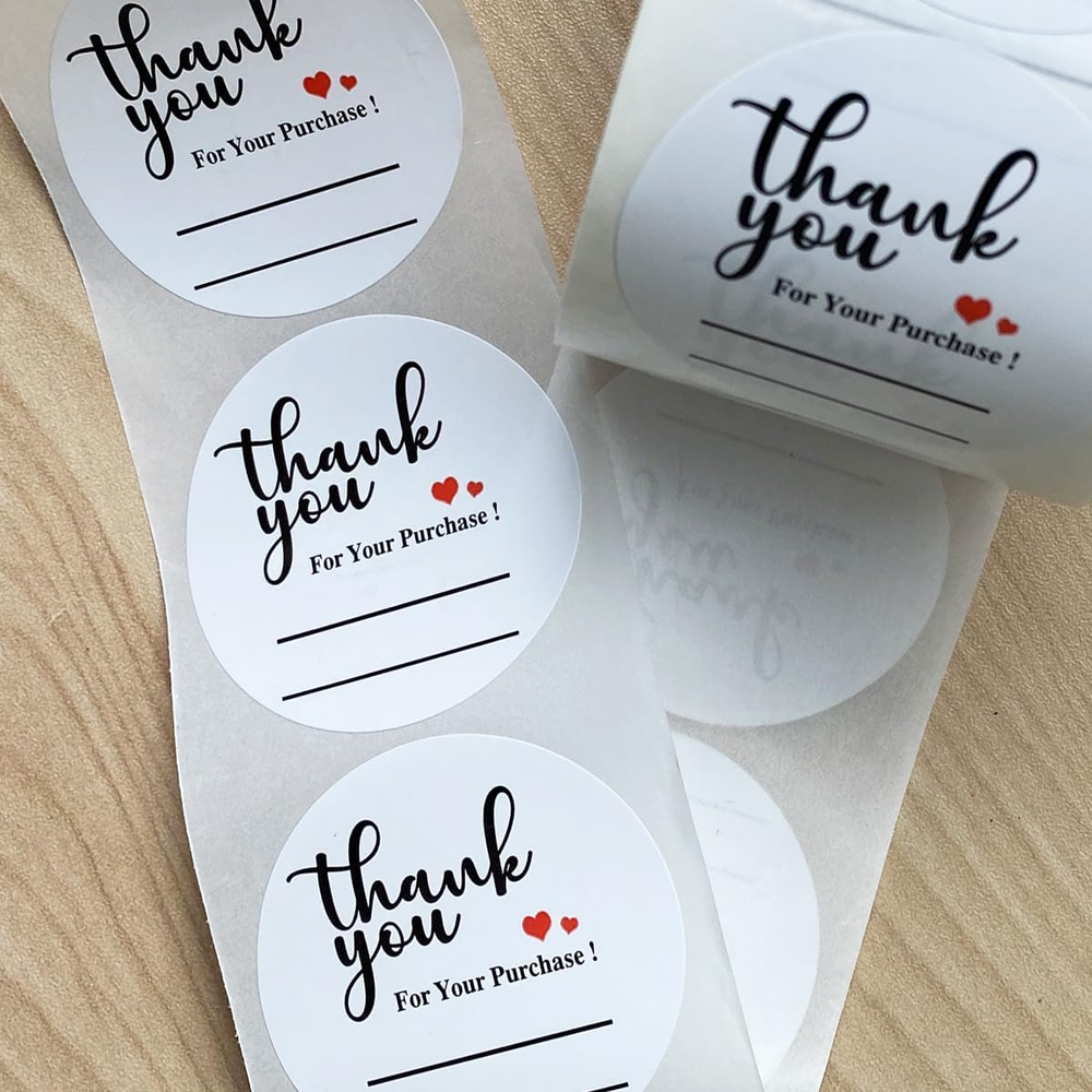 1. These thank-you stickers are a game-changer for my small business! The minimalist design looks clean and professional, and the writable space lets me add a personal touch. At 2 inches, they're the perfect size for packaging without being overwhelming. I love that they come in a pack of 500—plenty to last while showing appreciation to every customer. The adhesive sticks well but doesn't leave residue, and the black/white options match any branding. Perfect for bakeries, shops, or anyone who wants to add gratitude to their unboxing experience!