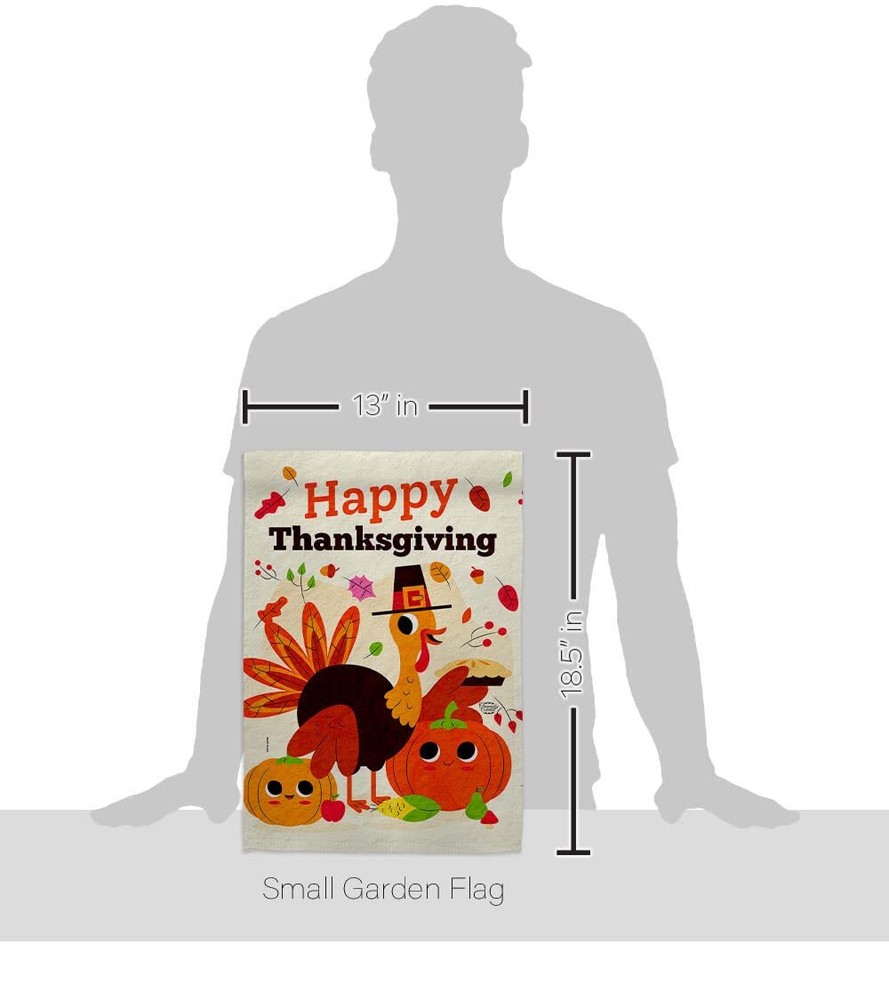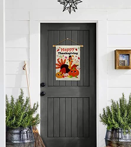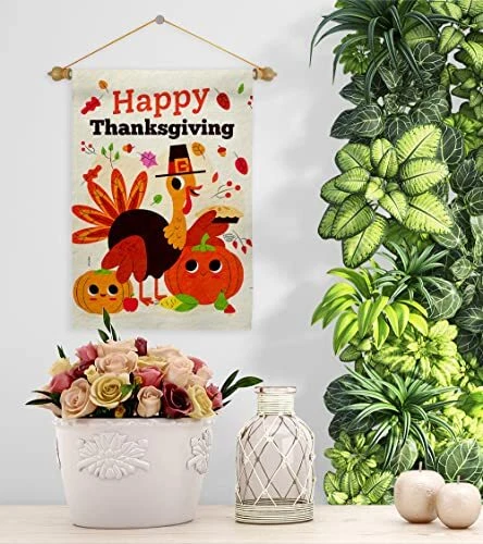 Thankful Fall Turkey Garden Flag Set with Wood Dowel for Thanksgiving Decor