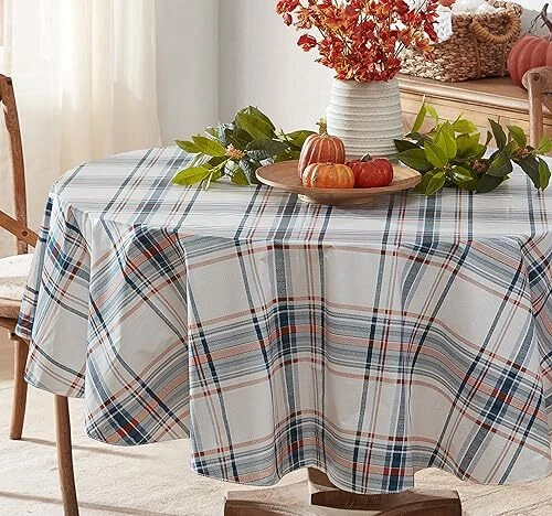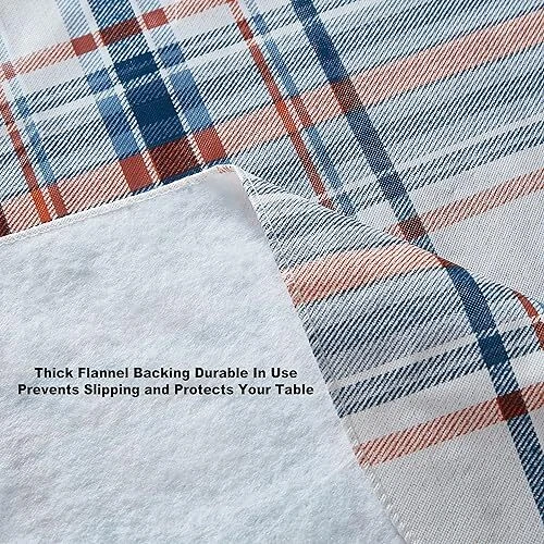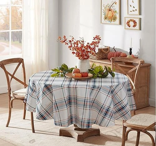 30 Days Return Policy Fast Delivery Trusted seller Thanksgiving Blue Rustic Mountain Plaid Vinyl Flannel Backed Tablecloth - Stonewashed Blue and Rust Country Plaid Easy Care Vinyl Dining Table Cover, 70" Round Product Description Vinyl Flannel Back Easy Care Wipe Clean Tablecloth Imported Blue Rustic Mountain Plaid Vinyl Flannel Backed Tablecloth - Stonewashed Blue and Rust Country Plaid Easy Care Vinyl Tablecloth, 70” Round SIZING: 70" Round (178cm) - Fits round tables from 20 Inch x 58 Inch Diameter and Seats 4 to 6 People - Round STYLING: The Blue Rustic Mountain Plaid Vinyl Flannel Backed , and Fall Tablecloth is a country rustic pattern that features a medium scale plaid in rust, stonewashed blue and rust on a white colored background. FEATURES: Beautiful Easy Care Kitchen and Dining Room Tablecloth for Dining, Entertaining, Parties, Picnics, Restaurants and Cafeterias. Indoor and Outdoor Flannel Back Holiday Tablecloths are Easy Care - Just Wipe Clean - No Laundering Needed CARE INSTRUCTIONS:: Vinyl Flannel Backed Tablecloth - For best results use mild soap with damp cloth or sponge on vinyl surface of tablecloth. Do not Iron or machine wash or dry. Materials: Surface 100% Vinyl, Flannel Backing: 100% Polyester Shipping Returns Payment Shipping Shipping is FREE to all addresses other than APO/PO boxes in the lower 48 states. All our stock ships from US-based warehouses. Shipped via USPS or UPS (depending on location and package weight) Unless stated otherwise, all orders will ship within 24-72 hours of your payment being processed. Check our feedback to see the great reviews of FAST shipping we offer. Returns As our valued customer, we will do our best to make sure the product you receive arrives to you on time and as expected. If you are not satisfied with your purchase, please contact us within 30 days of receiving your order to process a return. Payment We currently accept payment via eBay managed payments only. Once payment is cleared, we will dispatch your shipment within 1-3 business days. Please refer to the "Shipping" tab for more information regarding shipping speed to your destination.