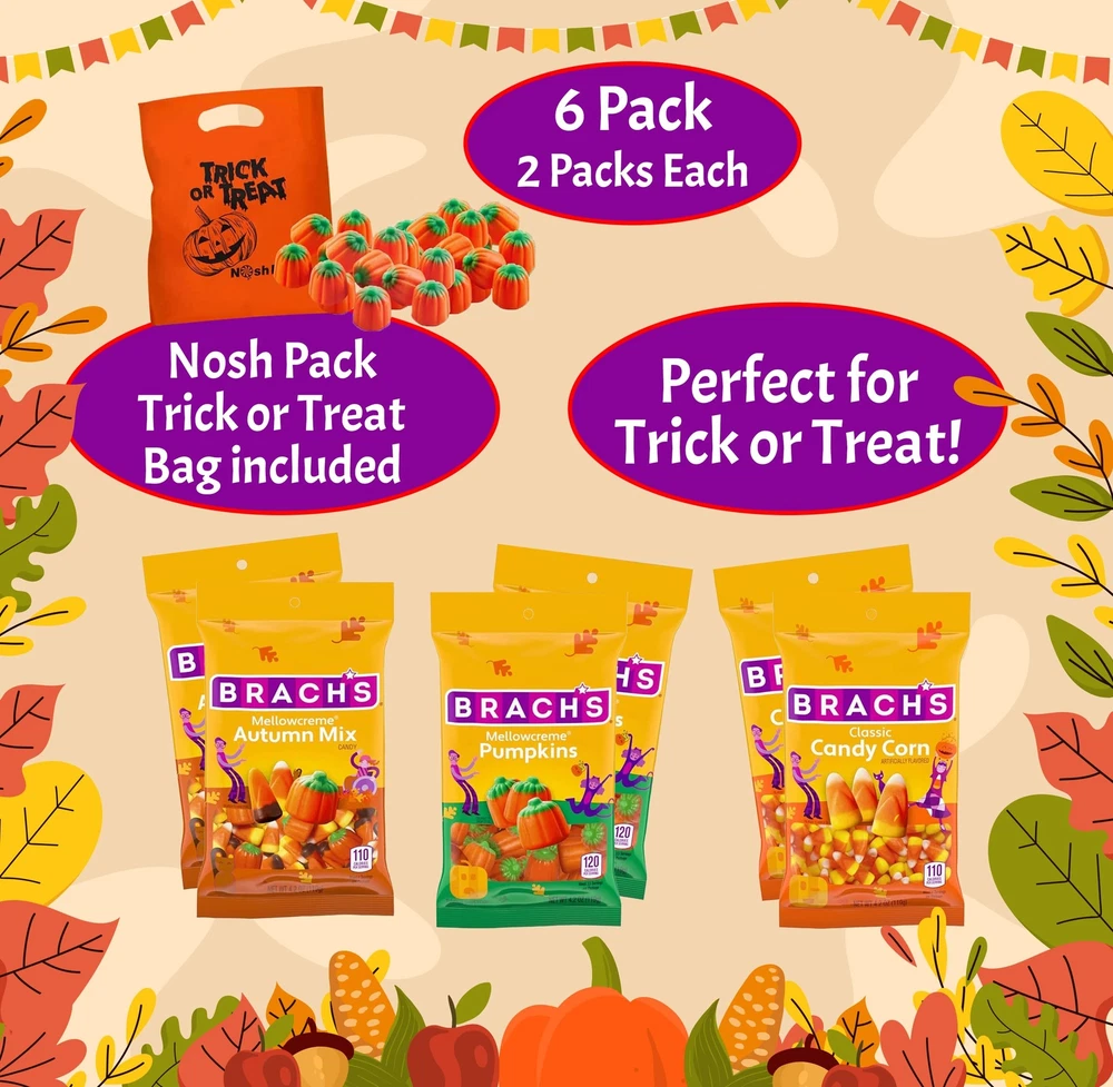 Trick or Treat Bag - Comes with a complimentary Halloween Trick or Treat bag from . Your favorite grocery and candy brand on . Check out our other seasonal and all year round listings for more goodies! Value Kit- Get 2 packs each of autumn themed candy in convenient pack! Comes with 2 Classic Candy Corn packets, 2 mini Pumpkin Candy, and 2 Candy Corn jelly beans gummy. Trick or Treat Bag included as well. Flavor of Fall - Individually wrapped classic autumn candy is perfect for trick or treat jelly bean candy gifts, and all types of festive fun! Add to baked goods or candy snacks bowl at your pumpkin carving contests and fall party! The perfect size for treat sharing and gift giving. Bring Autumn Home - Decorate seasonal treats with these cutely shaped candy corns, pumpkins and assorted seasonal themed candies! The possibilities are endless! Whether you're looking for a free spirited snack or a addition to your holiday decorations, we have you covered. Comes packaged in convenient pouch size, making them easy to share. Perfect for Trick or Treat! Variety pack of fall flavors makes this set the perfect thing to fill your trick or treat buckets with! Your friends will be delighted with these classic treats! Trick or Treat bag is included for the perfect complete holiday bag! gluten and nuts, making it a safe choice for those with allergies. Trick or Treat Bag - Comes with a complimentary Halloween Trick or Treat bag from . Your favorite grocery and candy brand on . Check out our other seasonal and all year round listings for more goodies!