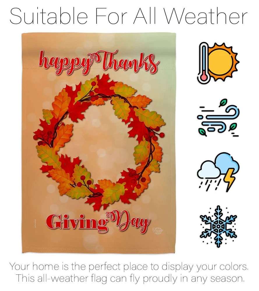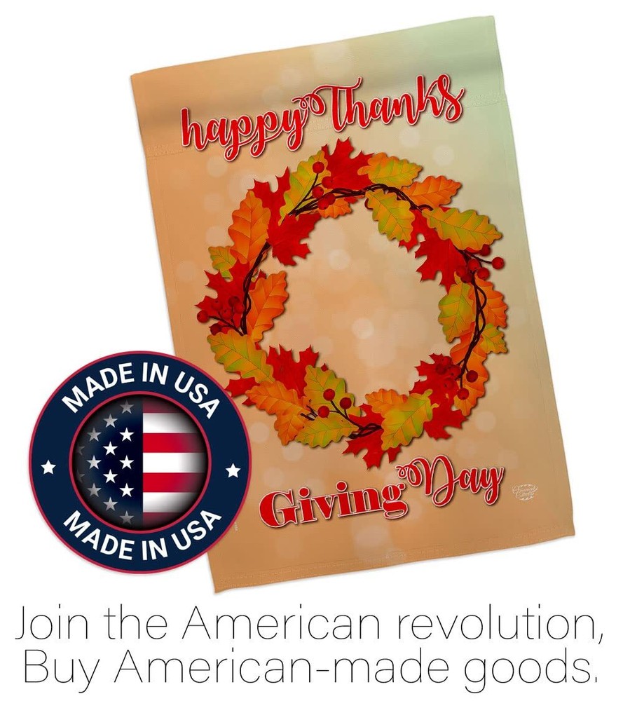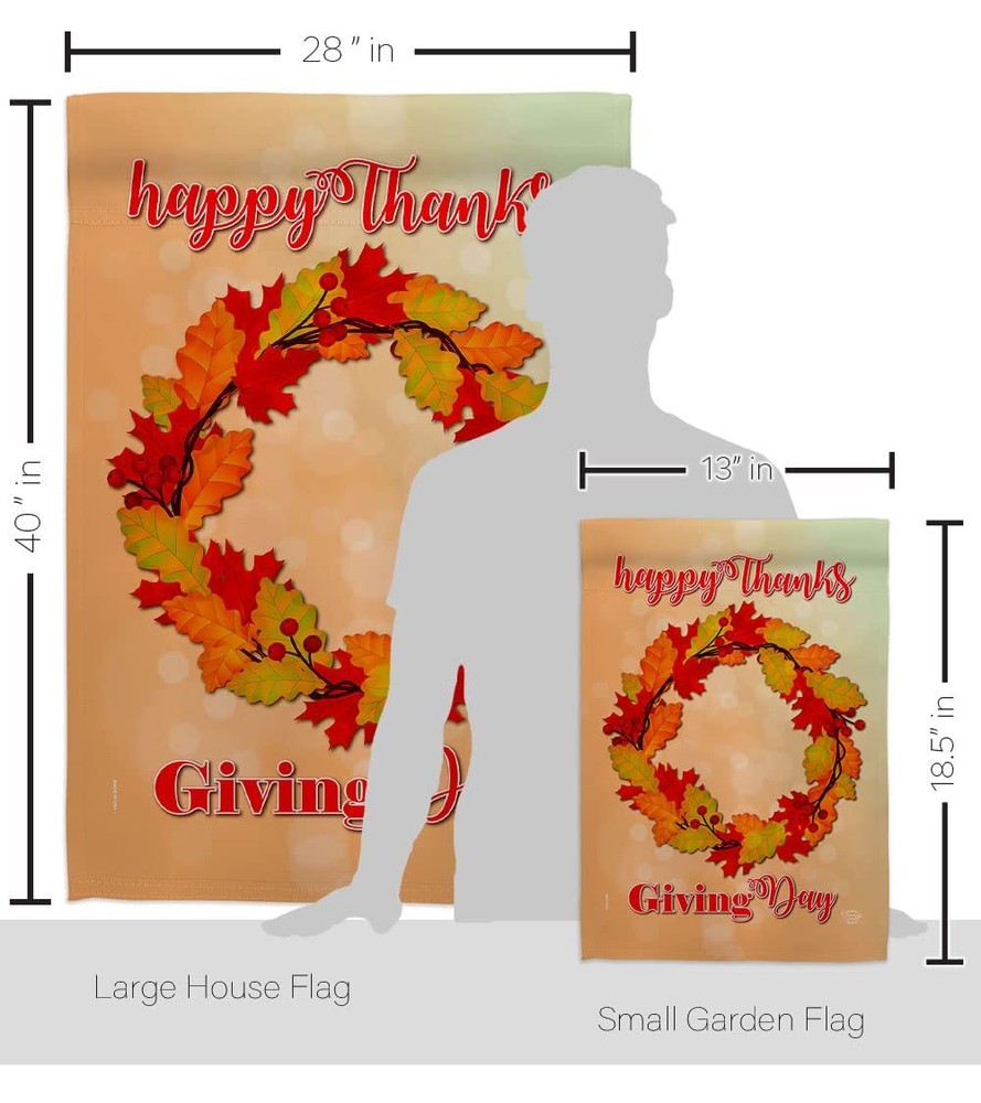 Thanksgiving Beautiful Matching Large House Mini Garden Flags SetOrnament Collection have variety of Flags Set for all occasions. Uniquely design for hanging indoor or outdoor use. We are committed to offering you exceptional values. Our customers enjoy displaying our Flags Set for longer periods. Specification: Theme: Thanksgiving Size: House 28" X 40" Size: Garden 13" X 18.5" Print: Double-Sided Readable: Readable Both Sides Material: Weather Resistant 3 Layers Blockout Stitching: Double Stitched Display: Vertical Hang Type: Sleeve Artist: © Ness Green Special Features: Origin: Made In USA 92138Package Include: 1 pc x Large House 28" X 40" 1 pc x Mini Garden 13" X 18.5"For more than a decade, we’ve been dedicated to manufacturing flags with no comparison in quality and beautiful designs. Our flags are made with our Guard material that is soft to the touch and designs can be read correctly on the flag. A feature that our customers will love. We are committed to using eco-friendly inks that won’t leave a foot print in our environment. MPN: OC-TG-S-192138-IP-BO-D-US18-OC 92138 92138 PROUDLY Made In USA - Package And Product Designed In California PURCHASE WITH CONFIDENCE - From 's US Authorized Resellers MADE OF DURABLE -100% Thick Polyester Fabric construction helps resist the wear and tear from frequent use TEXT READABLE BOTH SIDES - Flags Set Double-Sided Print DURABLE FLAG - Double stitching panels on multiple rows and high quality Sleeve to provide lasting strength
