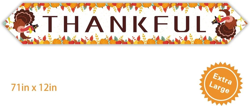 Thanksgiving Party Decorations,Thankful Table Runner, Thanksgiving Party Decoration, Autumn Thanksgiving Decoration,Thanksgiving Party Table Decoration, Thanksgiving Party Supplies Product Details Package Dimensions: 12.05 x 5.12 x 0.47 inches Item Weight: 0.634 ounces Number of pieces: 1 Batteries required: No Material: oxford cloth Brand: crazy man Pattern: Letter Print Style: Modern Manufacturer: crazy man Thanksgiving THANKFUL table runner decoration, beautifully designed The table runner is suitable for tables for 4 to 6 people, making your holiday more atmosphere 100D Oxford cloth high-grade durable material, can be reused, you don’t have to worry about damaging it The merchandise is easy to display, you just need to open the packaging bag to spread the things on the table, so you have enough time to prepare holiday decorations Your purchase is welcome, don’t miss it, if you don’t like it, we promise to refund and exchange at any time,