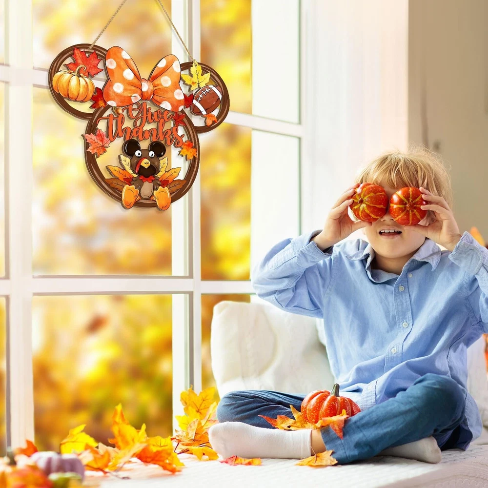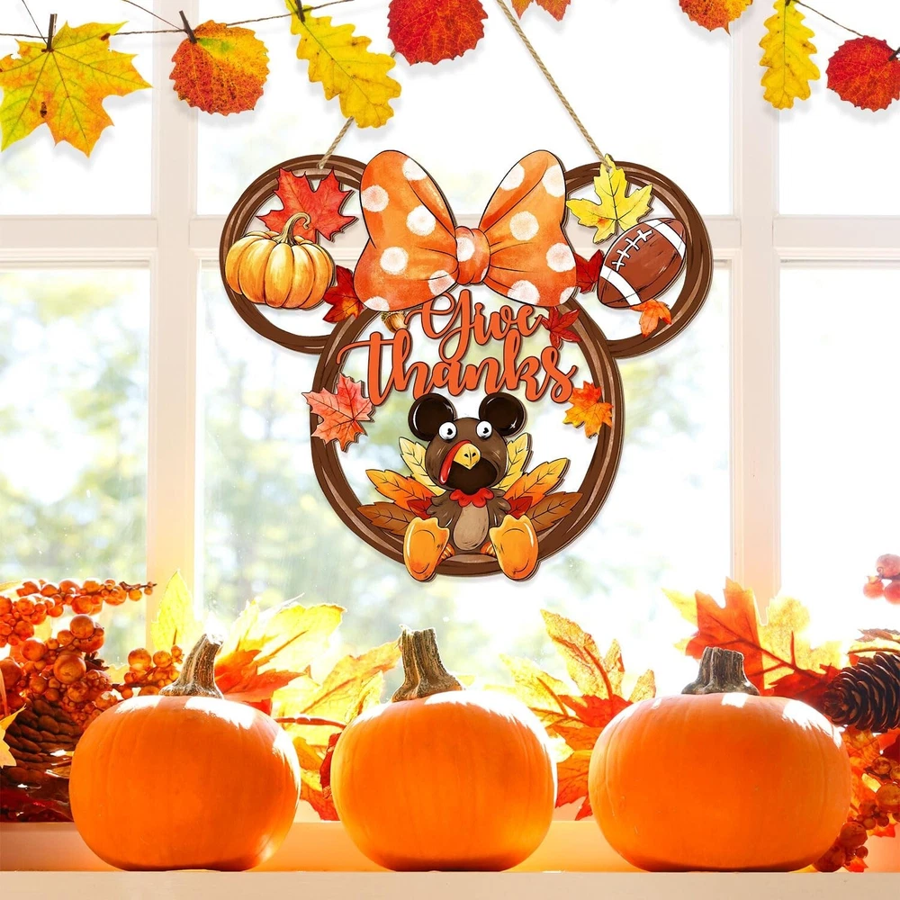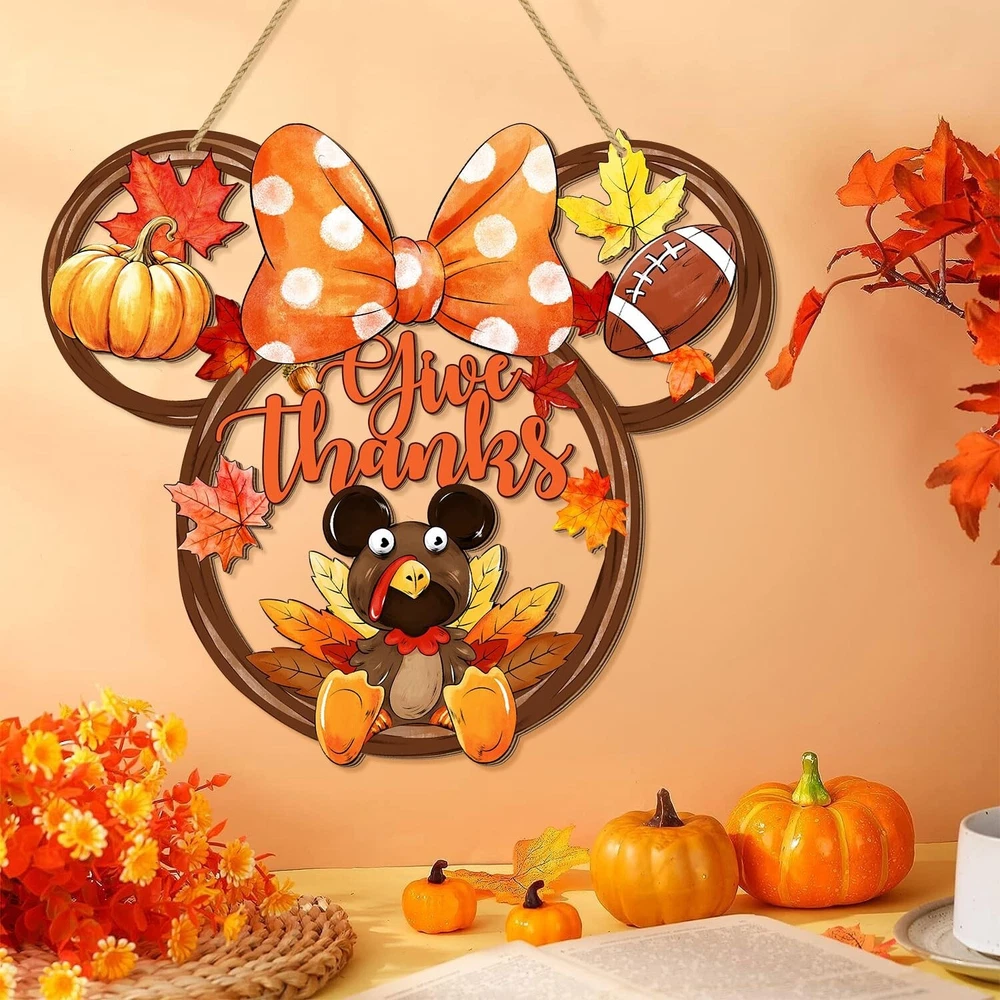 Thanksgiving Turkey Door Sign Mouse Shaped, Give Thanks Wooden Maple Leaves Pumpkin Hanging Decor for Front Door, Fall Wood Wreath Wall Decor for Autumn Harvest Home Decorations Product Details Color: Give Thanks Turkey Brand: Sionoiur Material: Wood Mounting Type: Door Mount Manufacturer: Sionoiur Product Dimensions: 13 x 11.4 x 0.04 inches Item Weight: 4.6 ounces Manufacturer: Sionoiur Country of Origin: China Item model number: MP-09601 Date First Available: August 22, 2024 What You Will Get: The package comes with 1 piece of wooden turkey door sign. Size:33*29cm (13*11.4inches), offering a substantial size for impactful decorative display. Crafted with vibrant colors and intricate details, this decorative piece is sure to bring a touch of autumn warmth to your entryway. Hang it on your front door or porch to greet guests with a delightful autumnal display. Premium Material: Crafted from high-quality wood with intricate laser-cut detailing for long-lasting use year after year. This lightweight sign is easy to hang and adds a whimsical touch to your fall decor. The vibrant colors and intricate details are sure to catch the eye of passersby and add a touch of festive flair to your autumn decor. Suitable for indoor and outdoor hanging. Unique Design: This Thanksgiving turkey door sign features a whimsical mouse character surrounded by fall foliage, pumpkins, and a football. The wooden plaque bears the heartwarming message 'Give Thanks', reminding you and your guests of the true essence of the holiday. Easy to Display: Includes a jute rope hanger for convenient wall or door mounting, adding a touch of rustic charm. Can be hung on doors, walls, or used as a wreath or yard decoration. This hanging sign will make a great addition to your Thanksgiving party. Decoration Scenes: Suitable for both indoor and outdoor use, adding a touch of fall whimsy to your home. Hanging it on the front door, back door, room door, yard, wall position near the entrance, even can use it in cafe and restaurant, office and business to greet guests. Eye-catching Thanksgiving Decorations This charming Thanksgiving door sign is the perfect way to welcome guests and spread holiday cheer! Crafted from high- quality wood, it features a delightful image of a turkey surrounded by fall leaves, a pumpkin, and a football. The vibrant colors and intricate details bring the festive scene to life. Product Details Material: Thick solid wood Color: As shown in the picture Size: Approx 13x11.4inches (33x29cm) Package Including: 1 x turkey hanging sign Premium Material Crafted from high-quality wood, this sign measures approximately 13x11.4inches, this lightweight sign is easy to hang and adds a whimsical touch to your fall decor. The vibrant colors and intricate details are sure to catch the eye of passersby and add a touch of festive flair to your autumn decor. Seasonal Hanging Decor This wood Thanksgiving Day sign is made of thick wood material, so it is durable to use and not easy to break. Whether you're celebrating harvest or simply embracing the cozy ambiance of autumn, this delightful door sign is a must-have for any home. Versatile Display Hang this delightful piece on your front door, wall, or anywhere in your home to add a touch of rustic warmth and autumnal charm. With its eye-catching design and meaningful sentiment, this Thanksgiving door sign is sure to become a cherished part of your seasonal decorations for years to come. Suitable to hang on the indoor and outdoor , porch, entryway, above the fireplace, and so on.