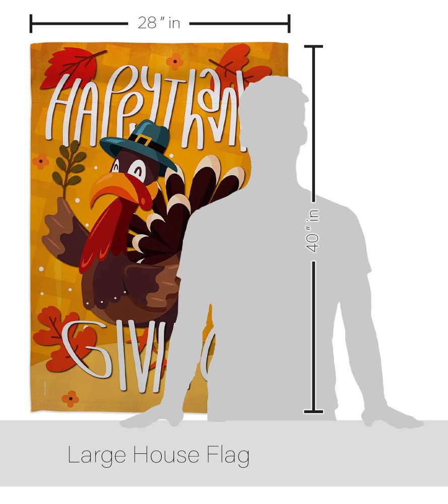 Thanksgiving Beautiful Large House Flags Pack - 2 Sets have variety of House Flags Pack for all occasions. Uniquely design for hanging indoor or outdoor use. We are committed to offering you exceptional values. Our customers enjoy displaying our House Flags Pack for longer periods. Specification: Theme: Thanksgiving Size: House Flags Pack 28" x 40" Print: Double-Sided Readable: Readable Both Sides Material: Weather Resistant 3 Layers Blockout Stitching: Double Stitched Display: Vertical Hang Type: Sleeve Artist: © Molly Will Special Features: Origin: Made In USA Package Include: 2 pc x House Flag 28" x 40" Package Decorative Flags For more than a decade, we’ve been dedicated to manufacturing flags with no comparison in quality and beautiful designs. Our flags are made with our Guard material that is soft to the touch and designs can be read correctly on the flag. A feature that our customers will love. We are committed to using eco-friendly inks that won’t leave a foot print in our environment. MPN: OC-TG-HP-192043-IP-BOAE-D-US17-OC 92043 92043