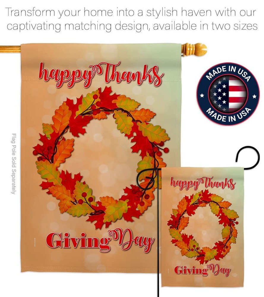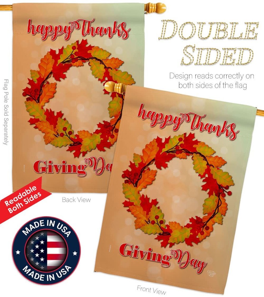 Thanksgiving Beautiful Large House Flags Pack with Support Our Troops - House Flag 28" x 40" have variety of House Flags Pack for all occasions. Uniquely design for hanging indoor or outdoor use. We are committed to offering you exceptional values. Our customers enjoy displaying our House Flags Pack for longer periods. Specification: Theme: Thanksgiving Size: House Flags Pack 28" x 40" Print: Double-Sided Readable: Readable Both Sides Material: Weather Resistant 3 Layers Blockout Stitching: Double Stitched Display: Vertical Hang Type: Sleeve Artist: © Ness Green Special Features: Origin: Made In USA Package Include: For more than a decade, we’ve been dedicated to manufacturing flags with no comparison in quality and beautiful designs. Our flags are made with our Guard material that is soft to the touch and designs can be read correctly on the flag. A feature that our customers will love. We are committed to using eco-friendly inks that won’t leave a foot print in our environment. MPN: OC-TG-HP-192138-IP-BOAF-D-US19-OC 92138 92138 PROUDLY Made In USA - Package And Product Designed In California PURCHASE WITH CONFIDENCE - From 's US Authorized Resellers MADE OF DURABLE -100% Thick Polyester Fabric construction helps resist the wear and tear from frequent use TEXT READABLE BOTH SIDES - House Flags Pack Double-Sided Print DURABLE FLAG - Double stitching panels on multiple rows and high quality Sleeve to provide lasting strength VIBRANT COLORS - With UV-Resistant Maintains Its Colors All Season Long FEATURES - Sleeve Hanger fits standard Banner/Flagpole, Bracket, Arbors or stand, SOLD Separately