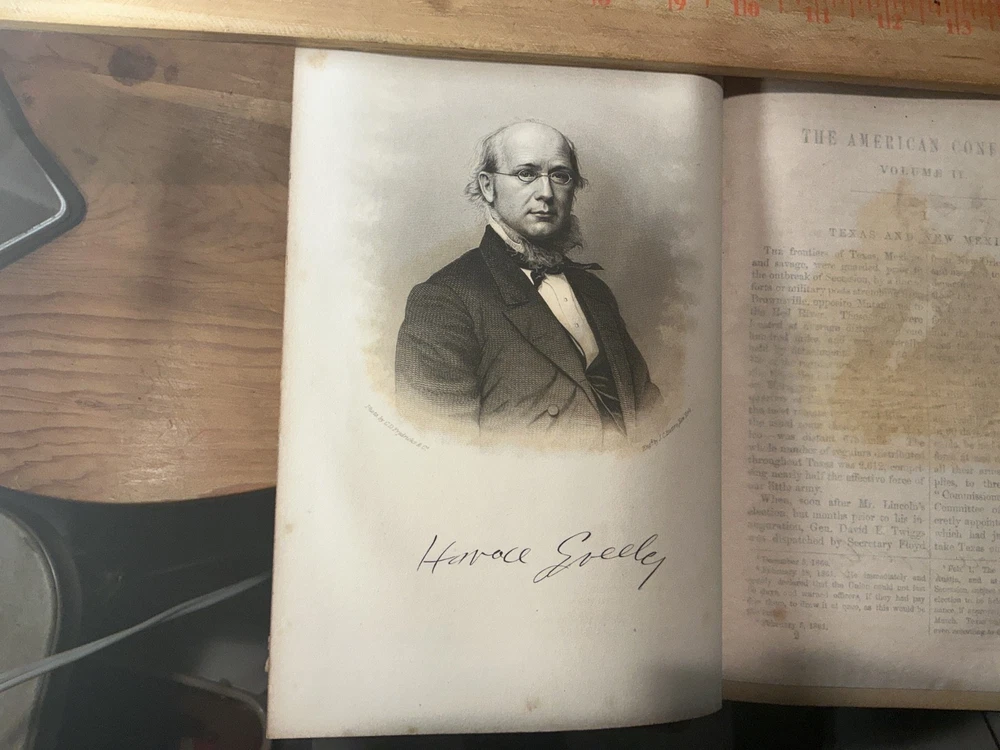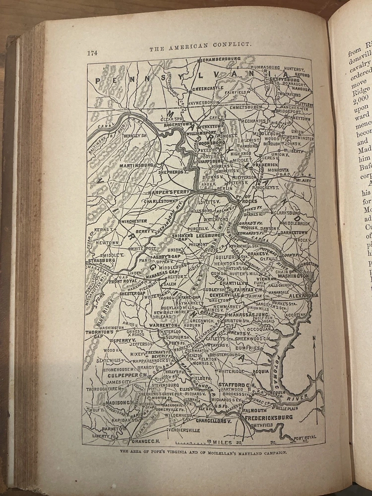 "The American Conflict 1860-1865" by Horace Greeley, published in 1864 by O.D. Case & Company, is a valuable first edition hardcover book that delves into the military and war aspects of the Civil War period. This original publication from Hartford, Connecticut provides a comprehensive look at the historical events of that time, featuring illustrations and insights from the renowned author Horace Greeley. A must-have for collectors and history enthusiasts, this book offers a unique perspective on the American conflict during the Civil War era. Calf leather cover, string binding,