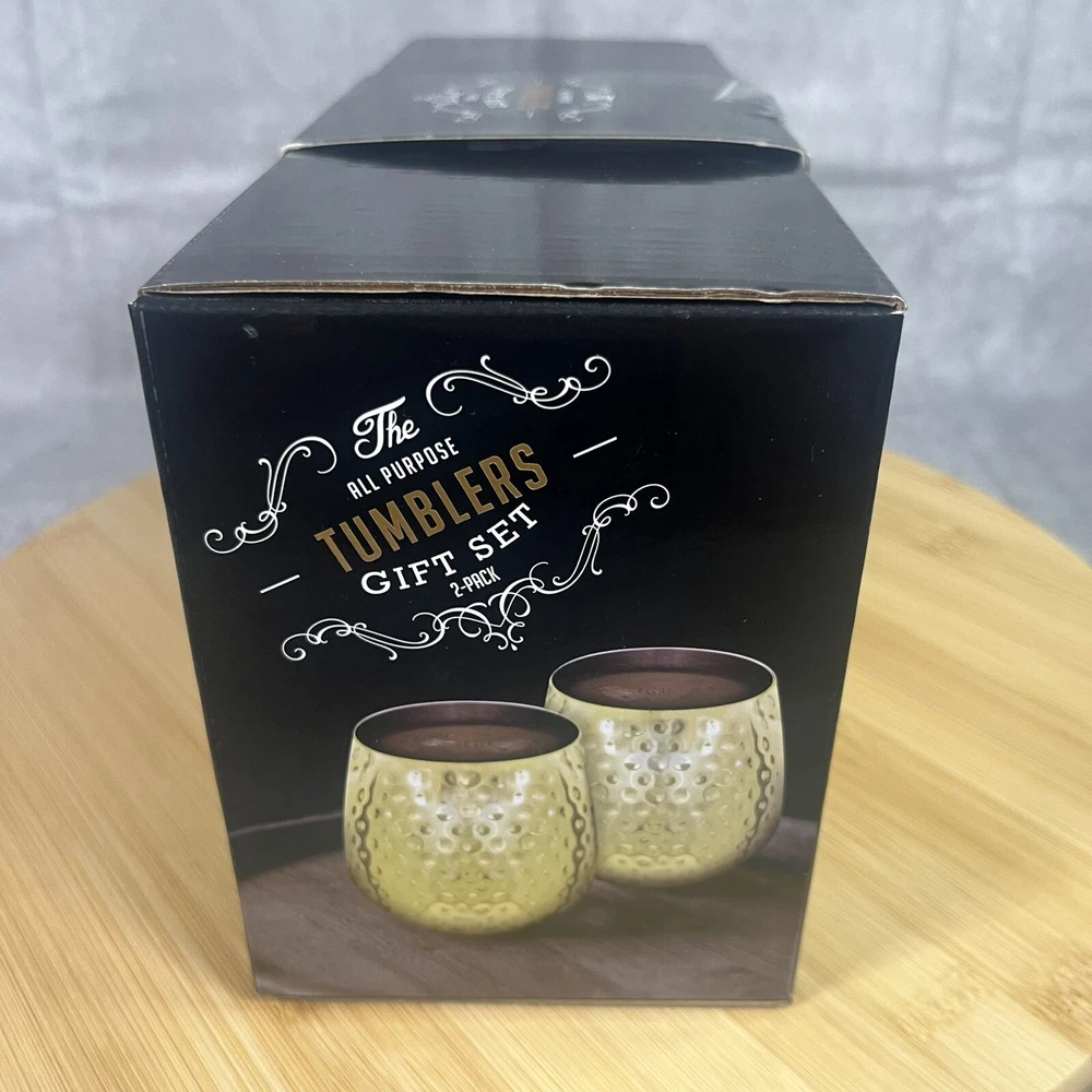 The All-Purpose Tumblers Gift Set Copper Mugs Elevate your drinking experience with this elegant glass tumbler set from Lenox. The set includes two copper mugs, perfect for all occasions. The glossy finish and hammer pattern make these tumblers a stunning addition to any collection. These 14 oz tumblers are break/chip resistant and feature a unique colonial style. They are perfect for unisex adults and come with care instructions to ensure they last a lifetime. The production technique of pottery adds to the originality of the product. This set is an original from the Diane product line and is not signed. It is suitable for California Prop 65 Warning. Hand wash only.