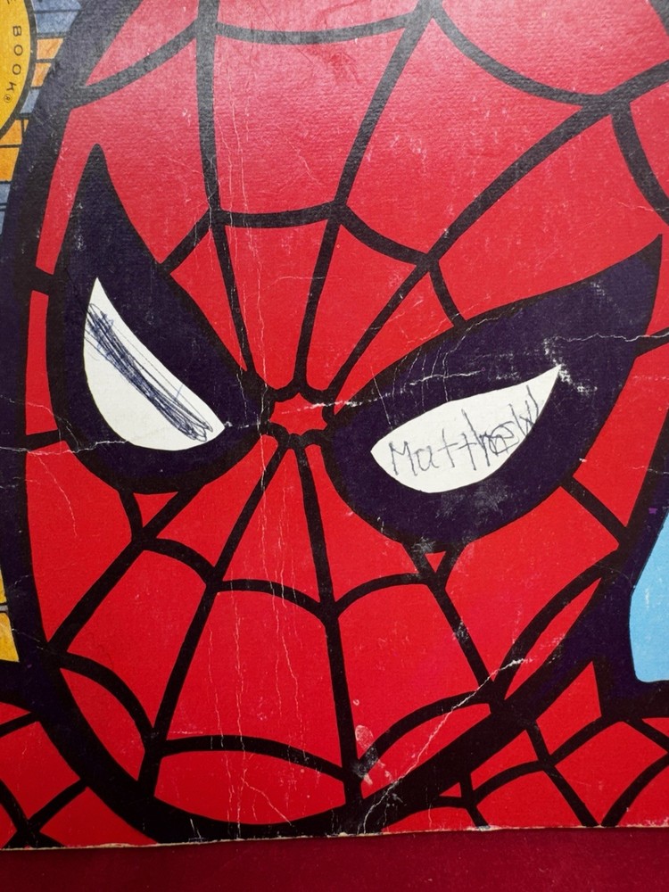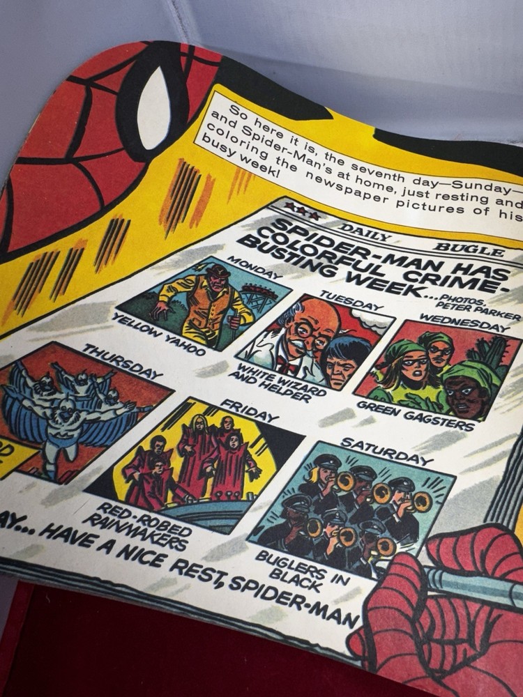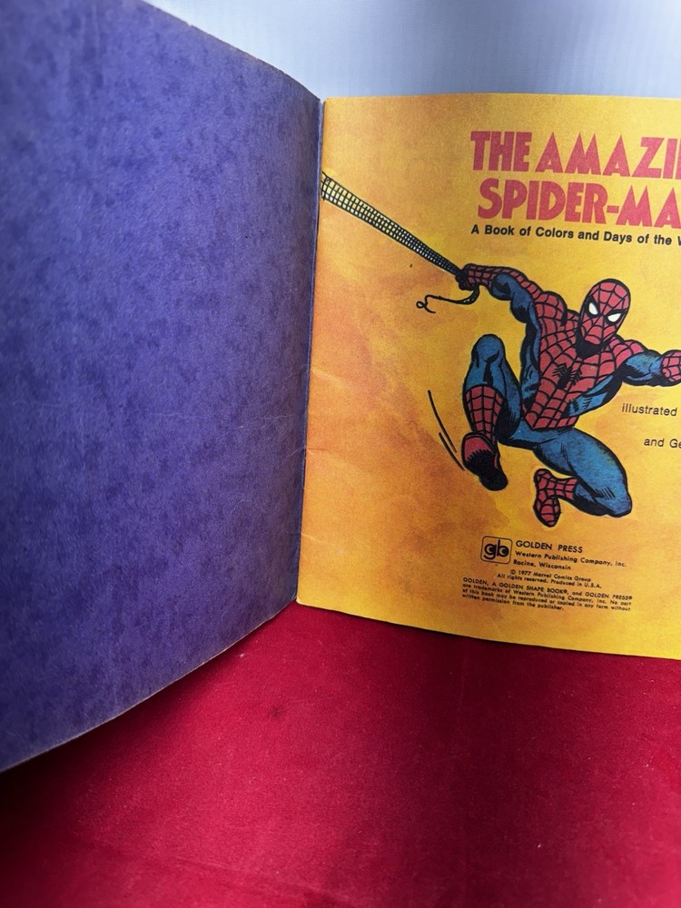 The Amazing Spider-Man A Book of Colors and Days of the Week 1977 Vintage is a rare and valuable addition to any comic book collection. This vintage softcover features the first printing of Stan Lee's artwork and story, with vibrant colors that bring the characters to life. The comic book is intended for children and young adults, with a focus on the superhero team of Fantastic Four and their adventures with Spider-Man. Has some writing on cover This comic book is a must-have for fans of US Comics and Marvel publishers, with a certification of uncertified and an era of Bronze Age (1970-83). The book is in excellent shape and is a perfect gift for any collector or fan of superheroes. Don't miss out on this rare and valuable item!