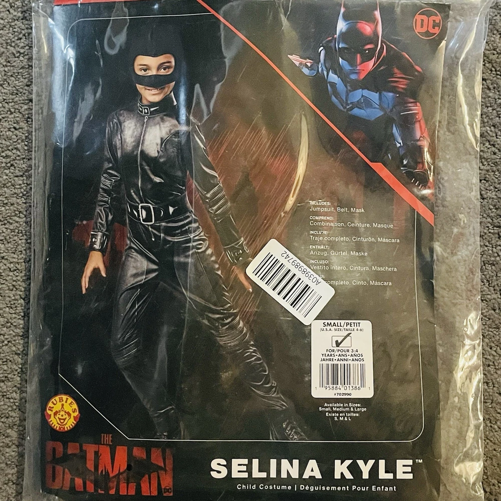 The Batman Selina Kyle Costume Girls Size Small 4-6 Jumpsuit Belt Mask Included