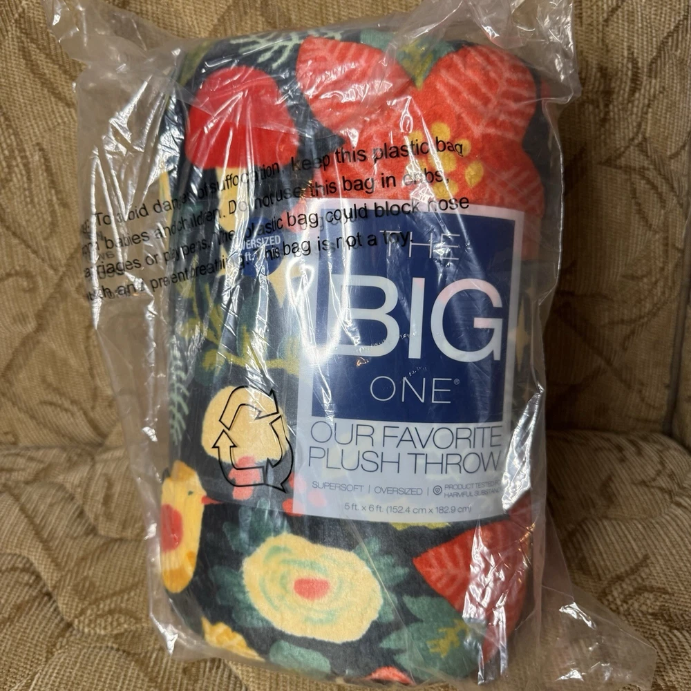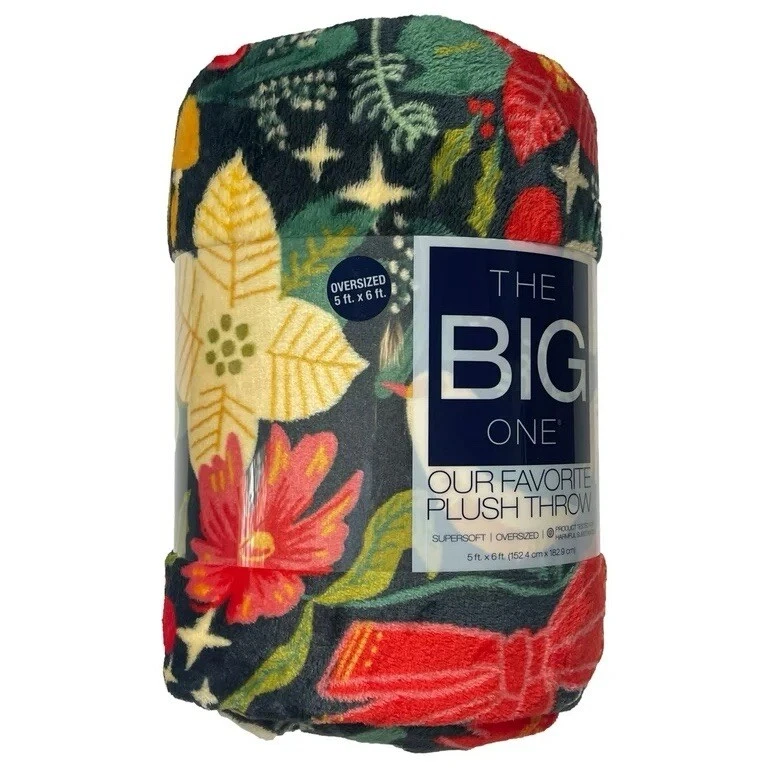 The Big One Plush Colorful Throw Blanket Oversized Christmas Floral, 5 ft x 6 ft