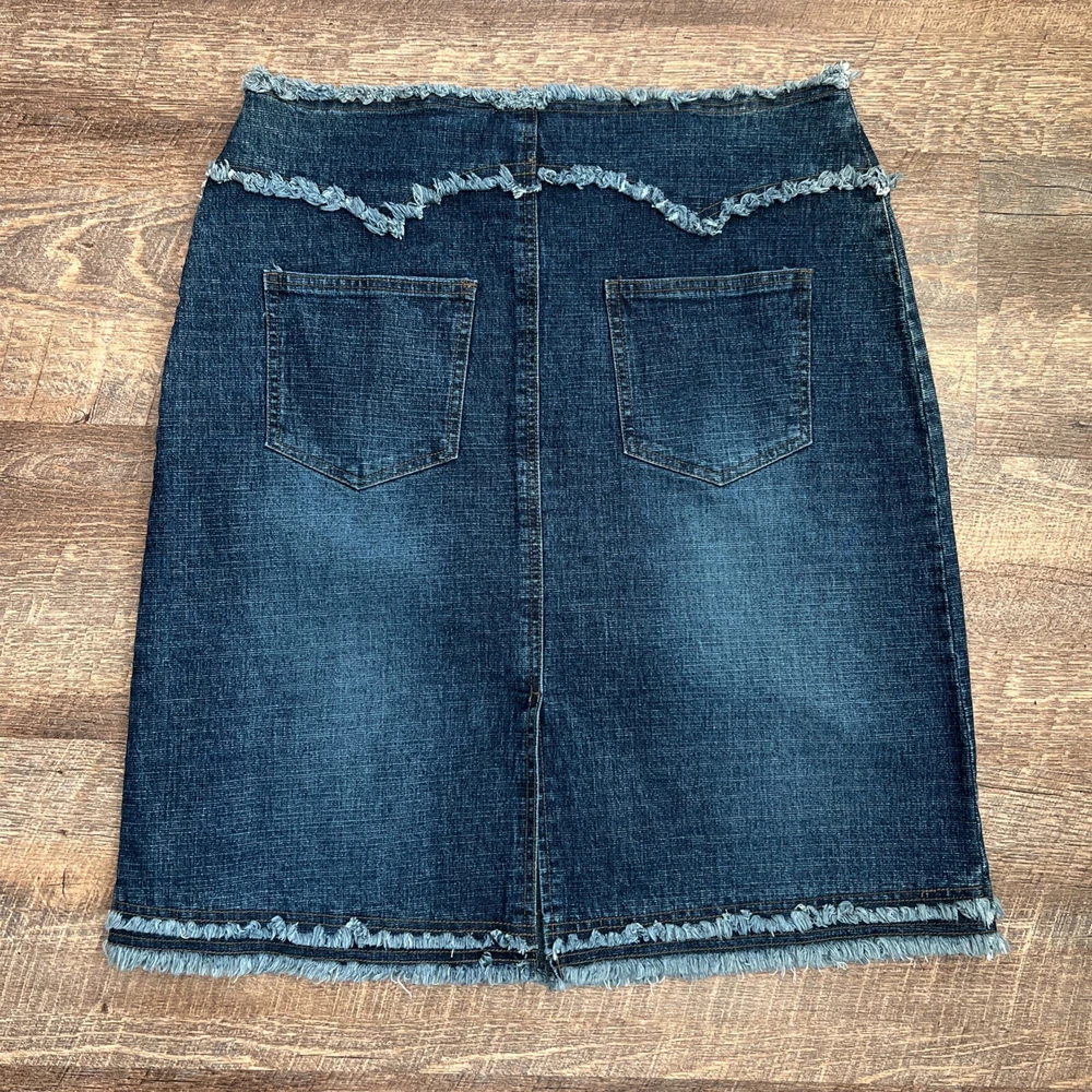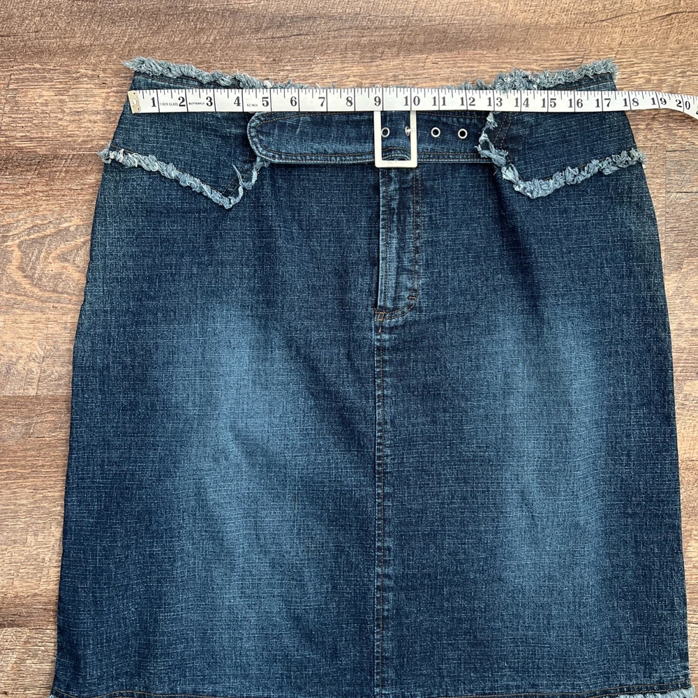 The Blues Denim Skirt Size 18 Frayed Waist Hem Buckle Y2K Retro City Cowgirl