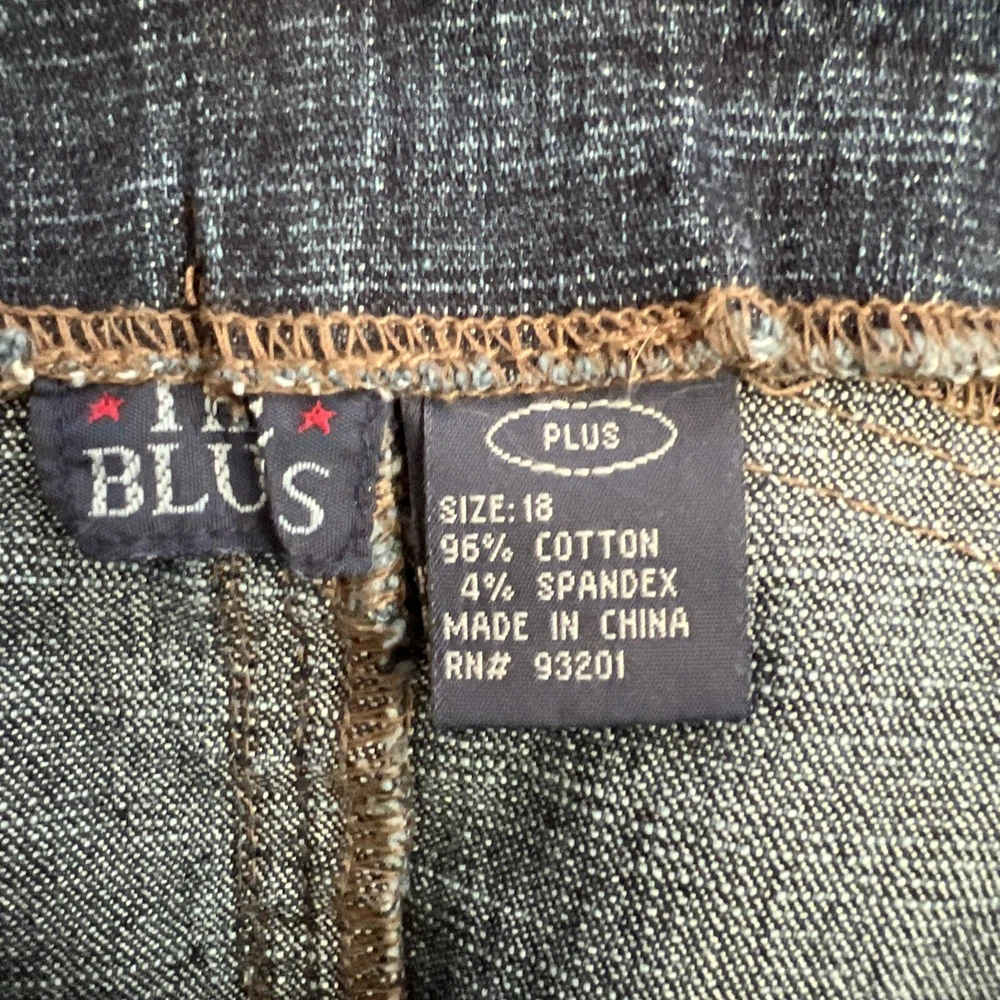 Personalize: No Color: Blue Size Type: Plus Skirt Length: Knee Length Season: Spring, Summer, Fall Handmade: No Closure: Button Department: Women Material: Cotton, Spandex Type: Skirt Garment Care: Machine Washable Style: Straight & Pencil Occasion: Casual, Travel Features: Stretch, Pockets, Slit Accents: Buckle, Frayed Pattern: Solid Country/Region of Manufacture: China Fabric Type: Denim Brand: The Blues Theme: American, 90s Size: 18 Character: Blue