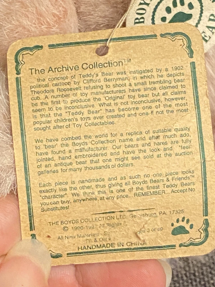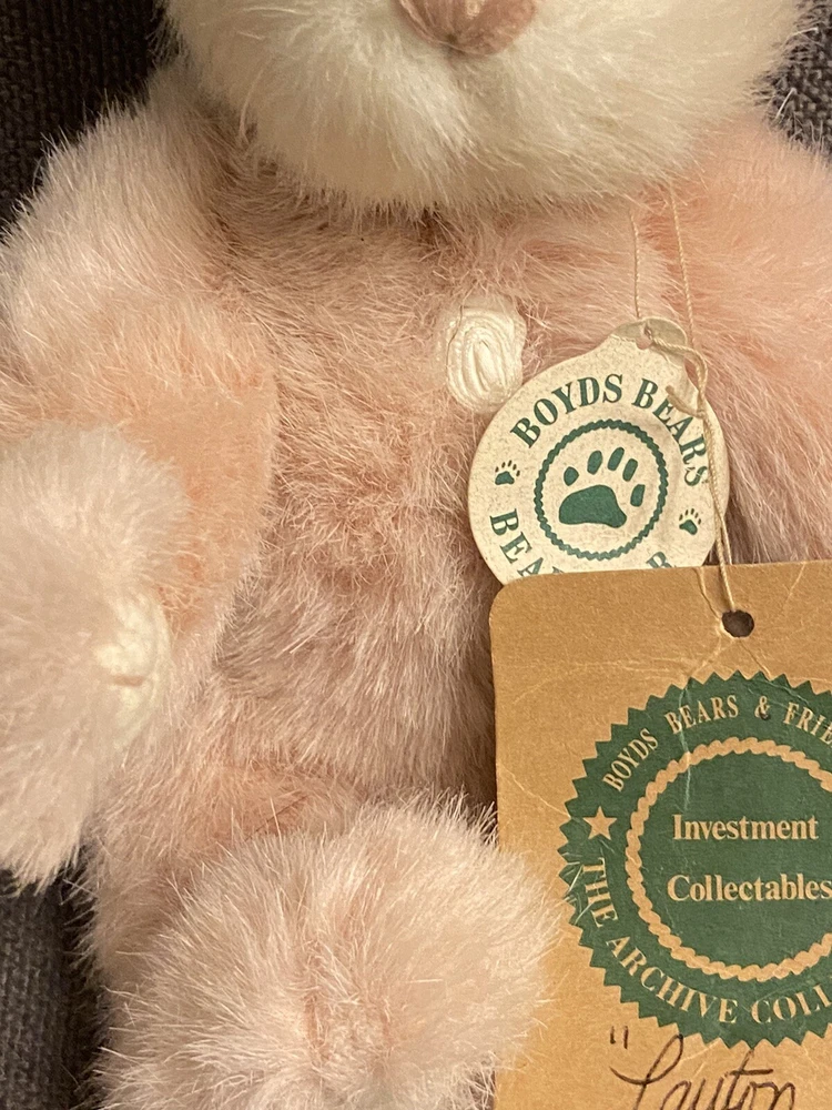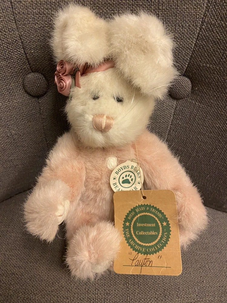 Year:1995Color:PinkSize:Small (6-14 in)UPC:Does not applygtin13:Does not applyCharacter Family:Boyd's BearsType:Plush ToyRecommended Age Range:4+Animal:BunnyCountry/Region of Manufacture:ChinaOccasion:EasterBrand:BoydsAge Level:4-7, 8-11 Years, 12-16 Years
