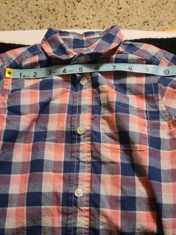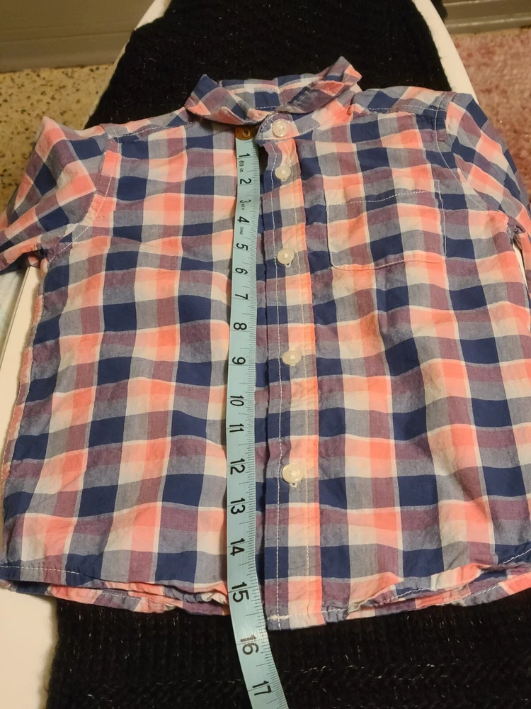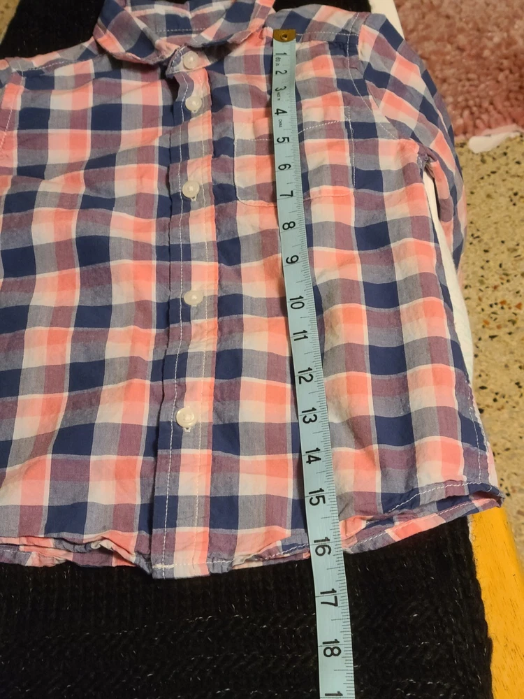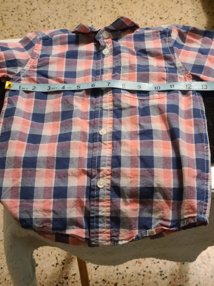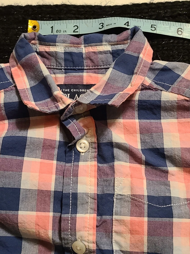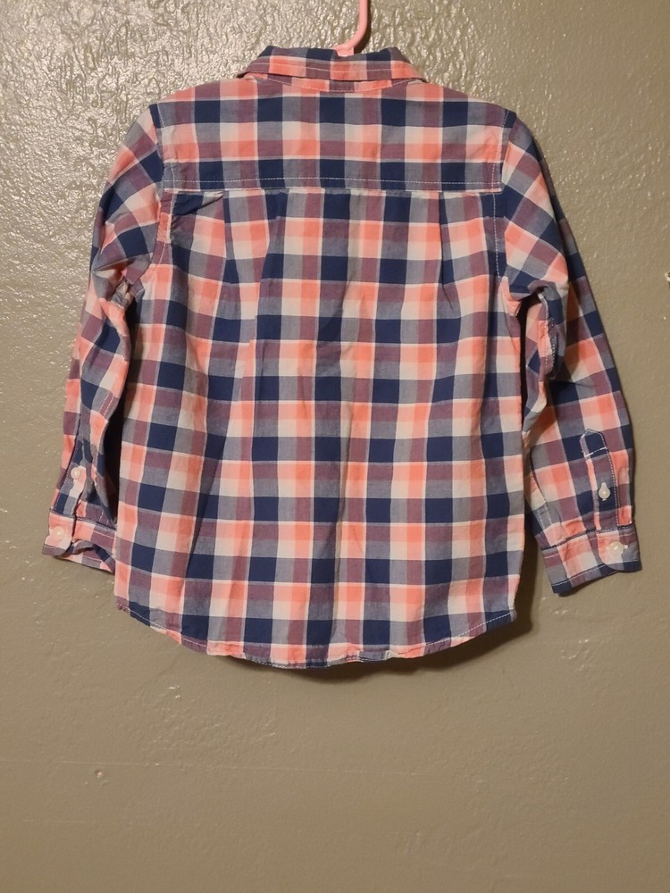 This stylish casual plaid long sleeve button-down shirt from The Children's Place is perfect for boys in size 4T. Made from 100% cotton, the shirt is machine washable and features a collared neckline, button closure, and a regular fit. Ideal for travel and casual occasions, this multicolor shirt is lightweight, breathable, and has pockets for added convenience. The colorful theme and basic style make it a versatile choice for winter, fall, and spring seasons, suitable for activities like walking and school. See photos for measurements approximate. EUC