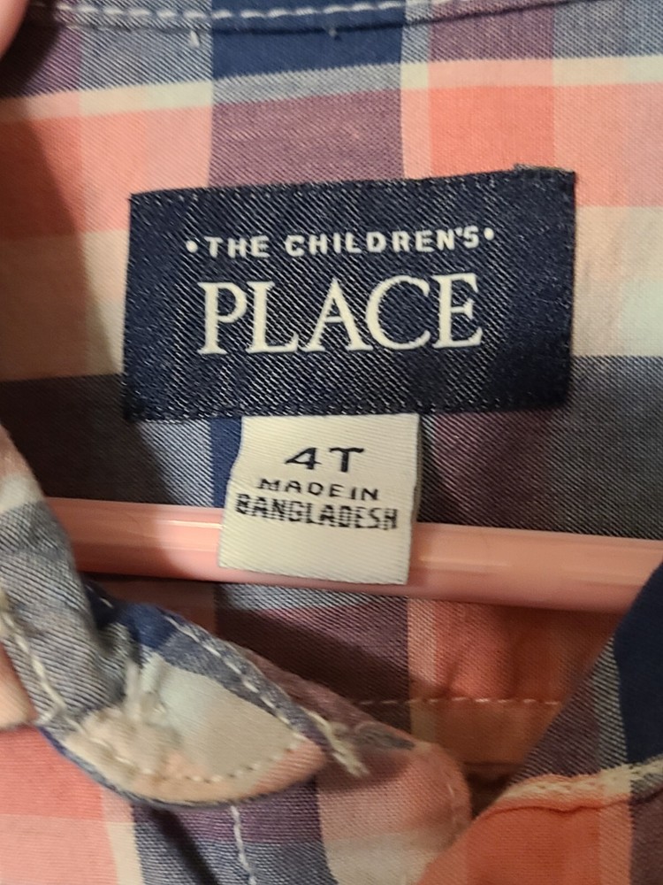 Country of Origin: Bangladesh Occasion: Casual, Travel Size: 4T Sleeve Length: Long Sleeve Theme: Colorful Pattern: Plaid Season: Fall, Spring, Winter Personalize: No Style: Basic Neckline: Collared Fabric Type: Down Brand: The Children's Place Garment Care: Machine Washable gtin13: Does not apply Fit: Regular Color: Multicolor Features: Breathable, Lightweight, Pockets Type: Button-Up Accents: Button Handmade: No UPC: Does not apply Closure: Button Department: Boys Material: 100% Cotton Vintage: No Performance/Activity: School, Walking
