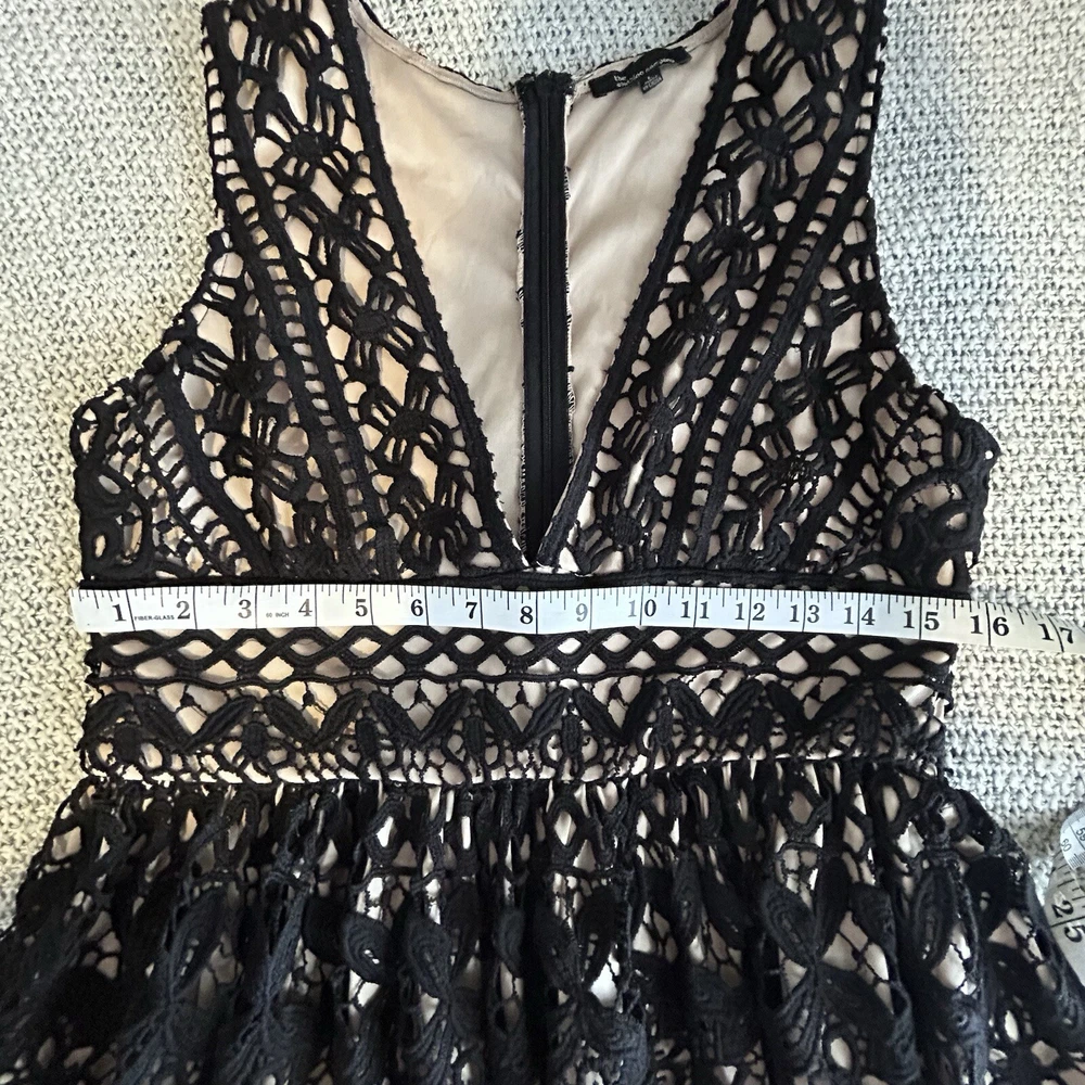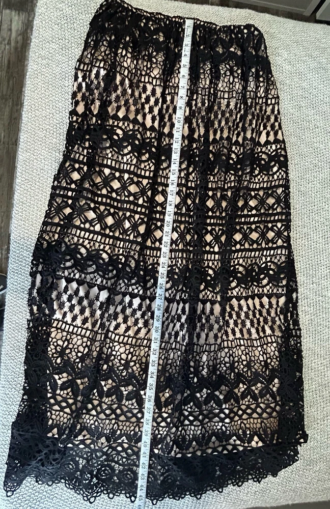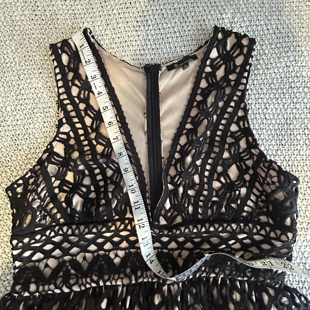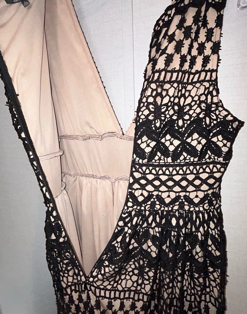 This elegant black maxi dress from The Clothing Company is a stunning addition to any wardrobe. Featuring a beautiful lace pattern, sleeveless design, and a V-neckline, this dress is perfect for formal occasions. The dress is made of high-quality polyester material with a crochet fabric type, making it both comfortable and durable. The dress has a zip closure and is lined for added comfort. It comes in size L . The dress is perfect for all seasons, including winter, summer, fall, and spring. Add this beautiful black maxi dress to your wardrobe today and make a statement at your next formal event!