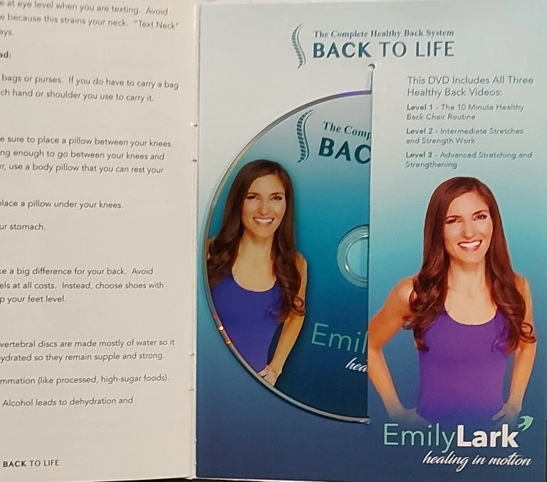 Recover and strengthen your back with "The Complete Healthy Back System - Back to Life" DVD. This comprehensive three-phase workout program, featuring Emily Lark, is designed to provide relief and improve fitness for anyone seeking to alleviate back pain. The DVD is presented in full screen with an aspect ratio of 16:9, ensuring a comfortable viewing experience. The program is tailored for users of all levels, offering exercises that progress in intensity to challenge and engage your back muscles. With a rating of G, it's suitable for all ages. The DVD is in English and follows the NTSC video format, ensuring compatibility with North American DVD players. Lark Wellness Studio brings you this essential exercise and fitness educational resource, packaged in a simple paper sleeve for easy storage and access.