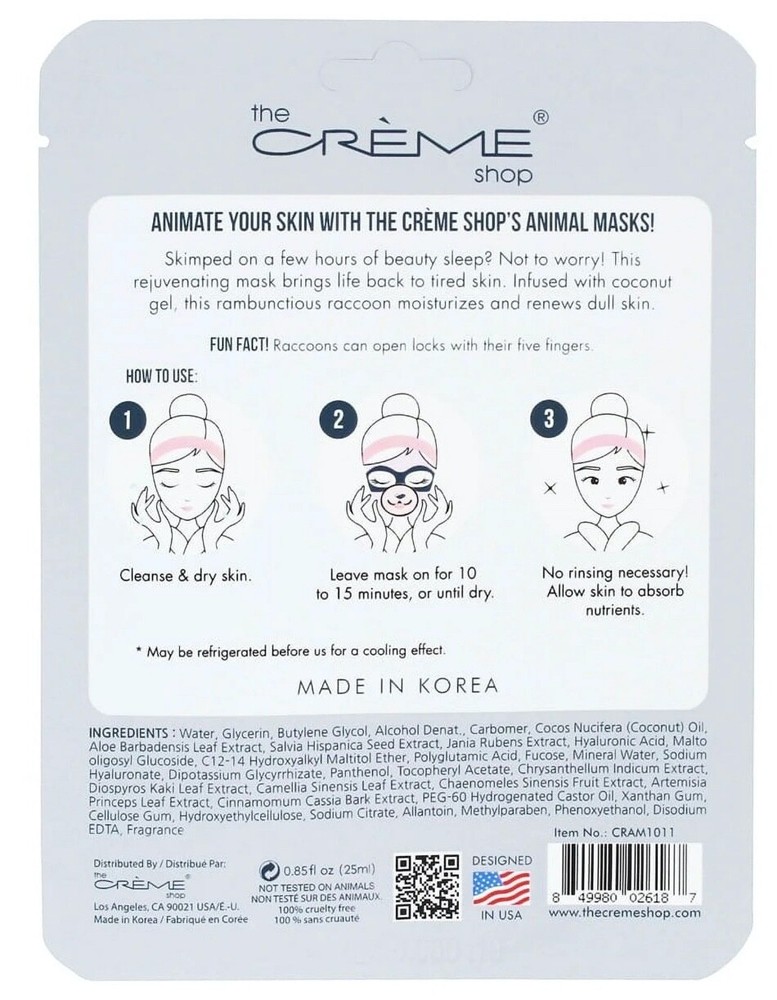 The creme shop wak up skin animated animal face mask with coconut gel Brand new item Description: Animate your skin with The Cr me Shop's Animal Masks! Skimped on a few hours of beauty sleep? Not to worry! This rejuvenating mask brings life back to tired skin. Infused with coconut gel, this rambunctious raccoon moisturizes and renews dull skin. Specifications: Product form: Mask Sheet Infused with coconut gel moisturizes and renews dull skin Tips: Color May be slightly different depending on computer and monitor setting. Package Content: 1 The creme shop wak up skin animated animal face mask with coconut gel ( Shipped with USPS Ground Advantage ) Shop with confidence! You're shopping with a PayPal verified, trusted eBay seller with excellent feedback rating. Payments: We accept PayPal, and also Visa, Mastercard, American Express, Discover, and eChecks through PayPal. Payments are required immediately using "Buy It Now" or after you're finished shopping using the eBay shopping cart. Shipping: We offer free domestic shipping with USPS Mail (1-5 business days delivery time). Your order will ship within 24 hours and in some instances same day of completing payment. International orders will receive a combined shipping discount, calculated by total weight. Please remember to pay for all items in one payment. International Buyers – Please Note: Import duties, taxes, and customs fees are not included in the item price or shipping cost. These charges are the buyer’s responsibility. Please check with your country’s customs office to determine what these additional costs will be prior to bidding or buying Return Policy: We accept returns for a refund if the item is shipped back within 30 days of delivery. Due to our fluctuating inventory, we cannot do exchanges, however, you can buy the desired item separately and we will refund the original item when it is received. Returned items must be in new, unused condition, with tags, if applicable. Communication: We check eBay messages frequently, multiple items a day. Feel free to message us if you have any questions or concerns. Please use eBay messages to communicate with us instead of email, because we check it more often and your messages are less likely to be lost. Feedback: Our main goal is provide a positive experience for our customers, and maintaining our excellent feedback rating is a top priority. Detailed Seller Ratings (DSR's): We strive to satisfy all our customers and to get that 5 star rating from you in all categories. If you feel that we don't deserve a five in any category, please contact us before leaving feedback and we will try our best to earn that 5 star rating from you. We are here to provide you with excellent customer service! Thank you for looking, your business is always appreciated.