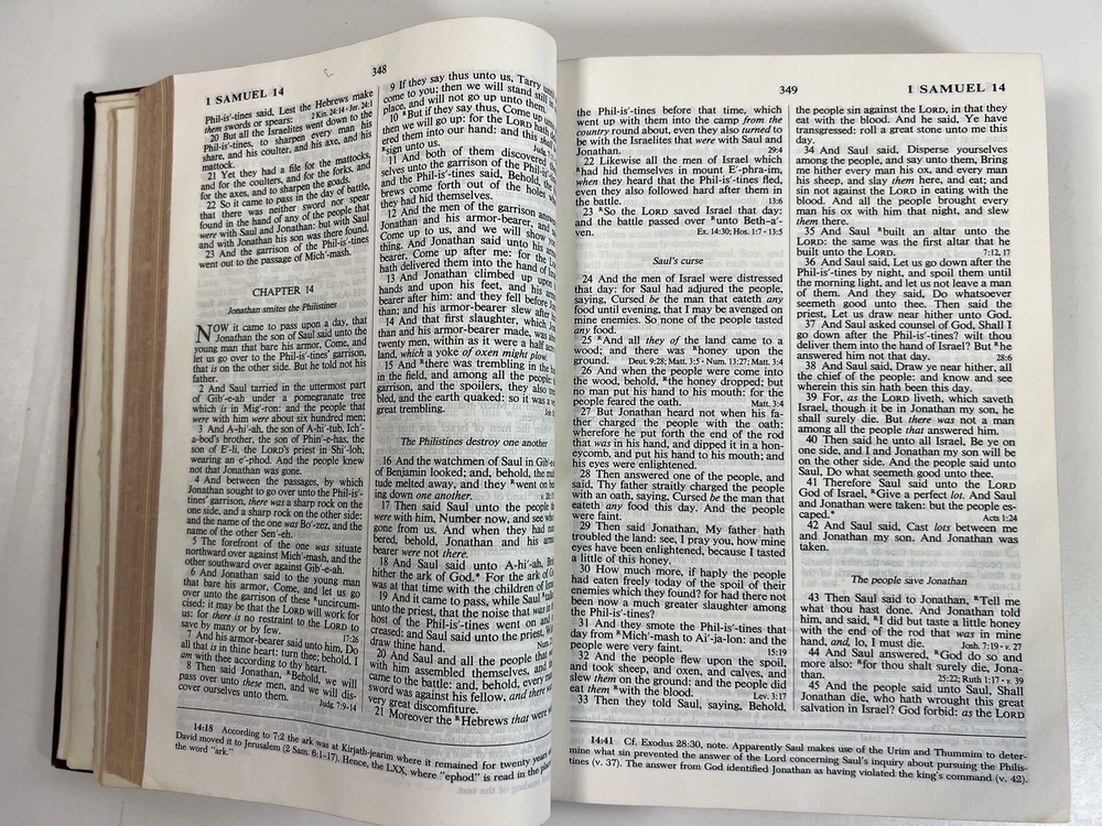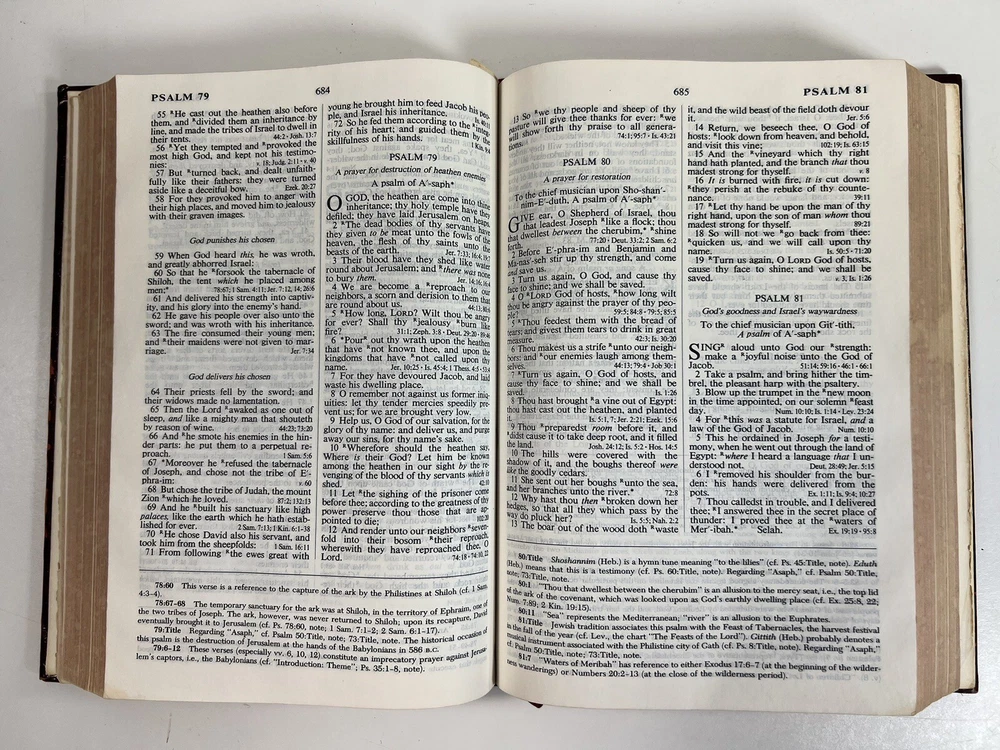 Format:HardcoverGenre:Religious & SpiritualSeller Notes:“Has some wear on the cover and light highlighting inside, still in good condition.”Topic:Bible, ChristianityCountry/Region of Manufacture:United StatesLanguage:EnglishSigned:YesAuthor:UnknownPublisher:Thomas NelsonType:Study BibleBook Title:The BibleEdition:KJVgtin13:DoesnotApplyPublication Year:1979Personalize:YesISBN:DoesnotApplyVintage:YesNarrative Type:NonfictionBook Series:HistoricalOriginal Language:EnglishIntended Audience:Adults