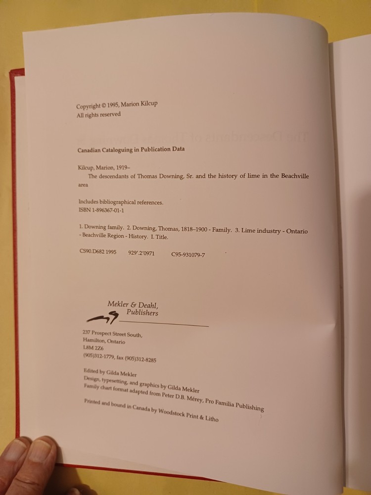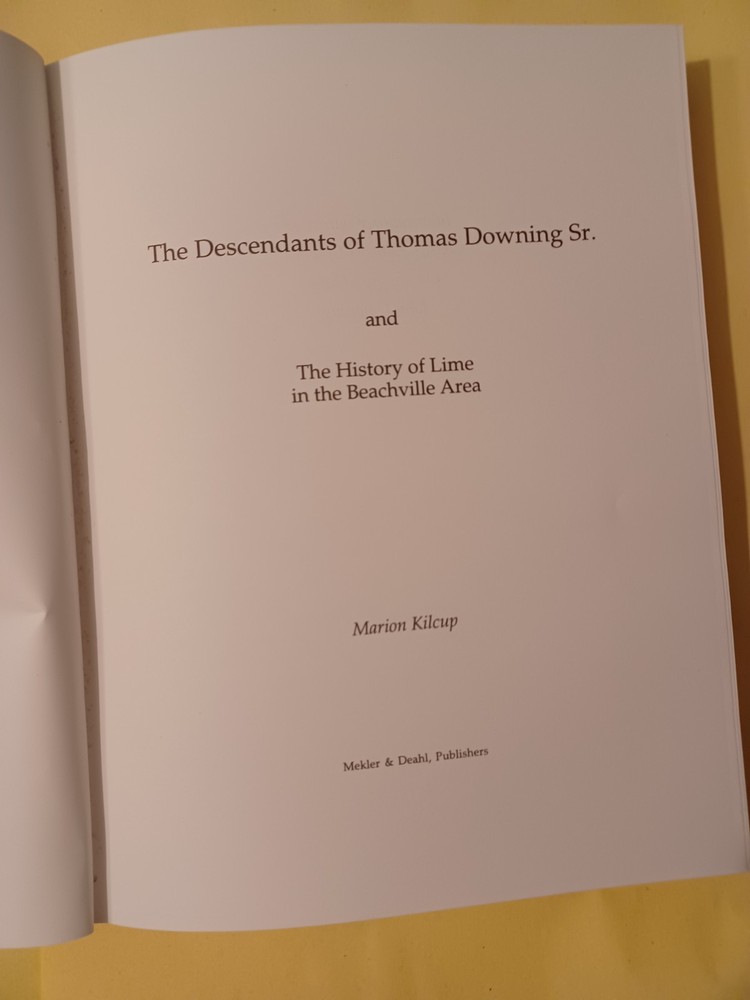 This is a copy of The Descendants of Thomas Downing Sr and The History of Lime in the Beachville Area by Marion Kilcup. Published by Mekler & Deahl, Publishers. This rare book is in new condition. Will ship to U.S. addresses only please.