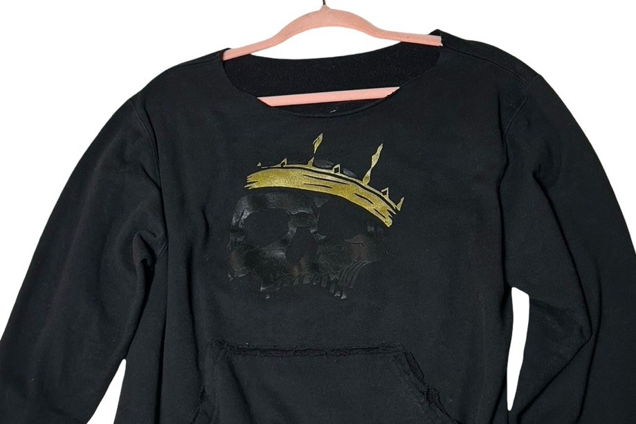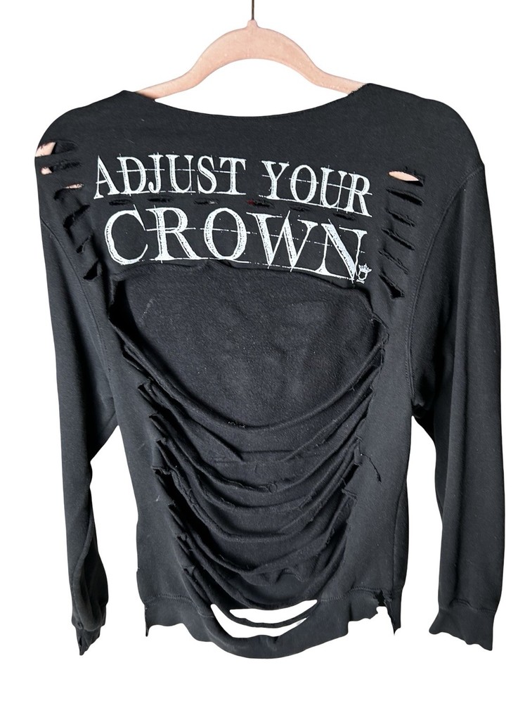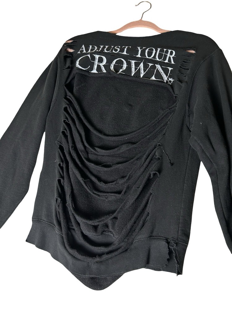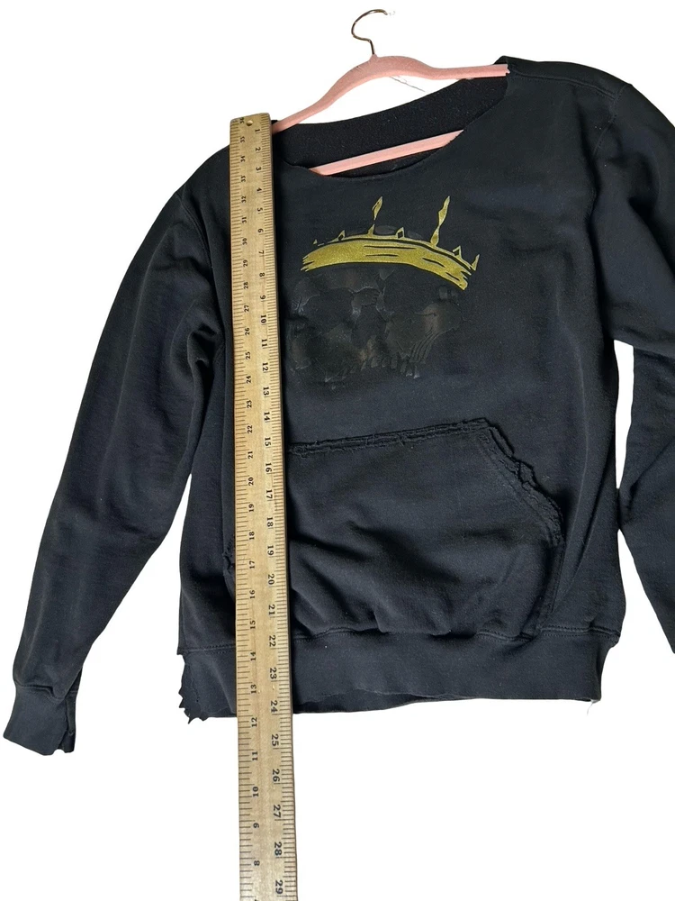 The Drive Company Adjust Your Crown Distressed Personalized Sweatshirt Sz Small There are no info tags. The item has been hand personalized. It has cut outs and the hood was removed. Light fading throughout. Please study pictures carefully before purchasing Please review the pictures Very carefully, before purchasing, for condition, details, and measurements. We do our best to describe accurately all of our items. The Approx. Measurements Laying Flat (not doubled) : 24" Top to Bottom Length 19" Shoulder to shoulder 19" Armpit to Armpit 24" Sleeve Length 14" Width at Hip Feel free to ask any questions. Thank you for visiting our store! BgH4