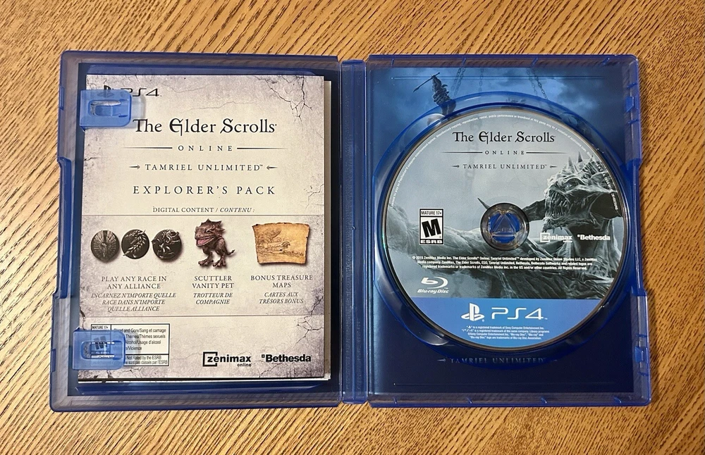Immerse yourself in an epic adventure with The Elder Scrolls Online: Tamriel Unlimited for PlayStation 4. This role-playing game is rated M for mature audiences. Explore the vast open world of Tamriel, a region-free zone, and experience the thrill of online playability with the explorers pack DLC **Please Note: DLC Code is included, not sure if it can be redeemed multiple times, it’s a used game so I’m guessing the code has been used at least once, so no guarantees on the dlc. The game, published by Bethesda, comes with a manual and is perfect for those seeking a thrilling gaming experience. The unit type is a single unit, and the game was manufactured in the United States in 2015. Get ready to embark on an unforgettable journey with this custom bundle that includes no additional items.