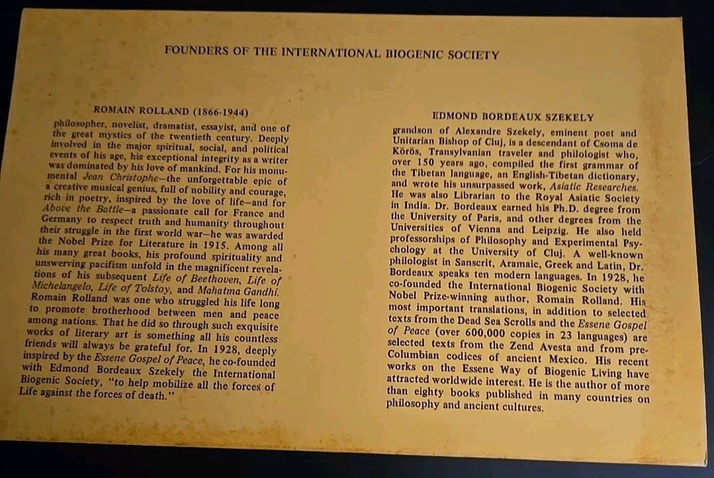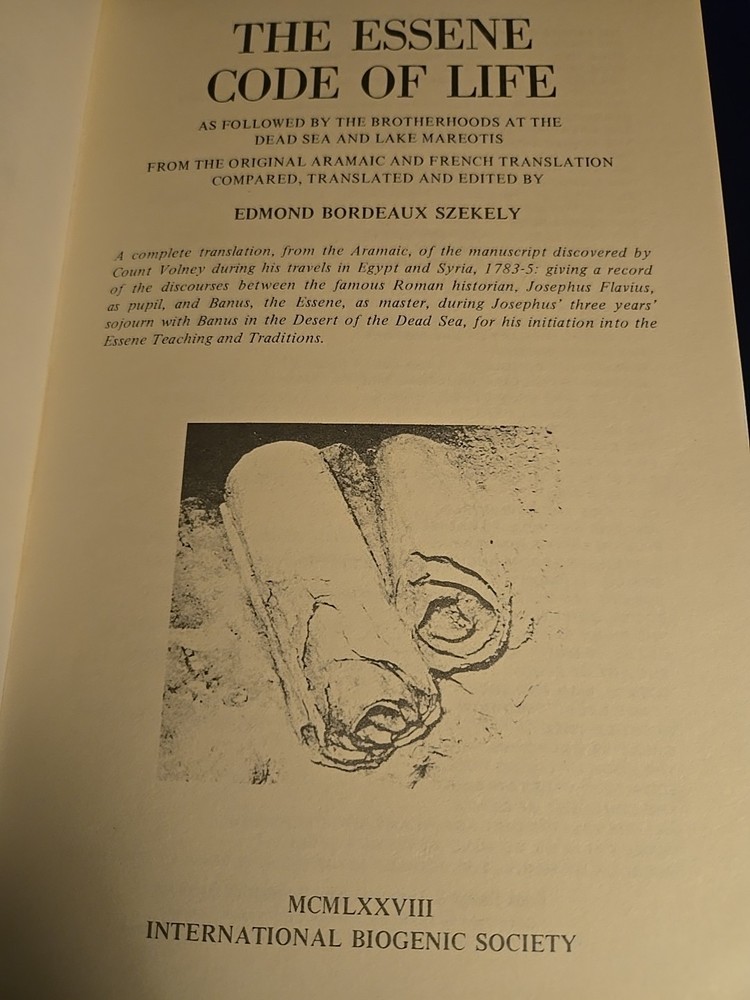 "The Essene Code of Life" by Edmond Szekely is a vintage paperback book published in 1978. It is a first edition, illustrated book that delves into the spirituality of The Essenes. The book is personalized and provides insights into the religious and spiritual practices of this ancient group. Written in English, this original book offers a unique perspective on the Essene way of life, making it a valuable addition to any collection focusing on religion and spirituality.