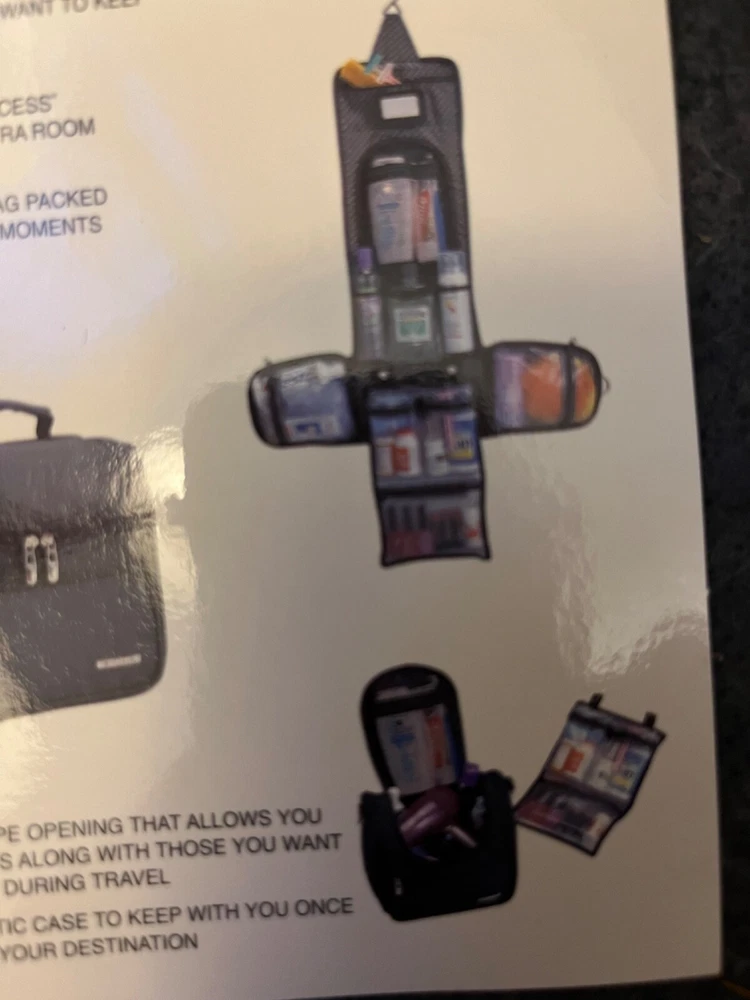 Handle, Hanging, Mirror, Pockets, Straps, Zipper