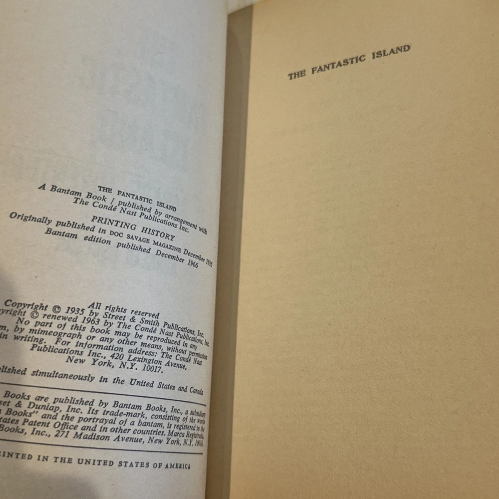 The Fantastic Island By Doc Savage Bantam Books 1966 VTG PB.