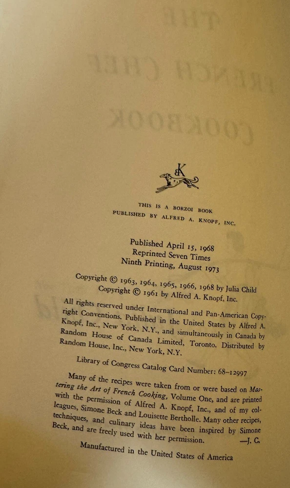 Discover the secrets of French cuisine with "The French Chef Cookbook" by Julia Child. This hardcover book, published in 1973 by Alfred A. Knopf, features 424 pages of classic recipes and personal anecdotes from the renowned chef. The book is illustrated and written in English, making it accessible to young adults and adults alike. With a focus on cooking and food, this nonfiction book is perfect for anyone interested in French cuisine. The book weighs 1 lb and measures 8.5 inches in length, 5.5 inches in width, and 8.5 inches in height. It is not personalized, inscribed, or signed, nor is it an ex libris. This 9th edition cookbook is a must-have for any kitchen and a great addition to any cookbook collection.