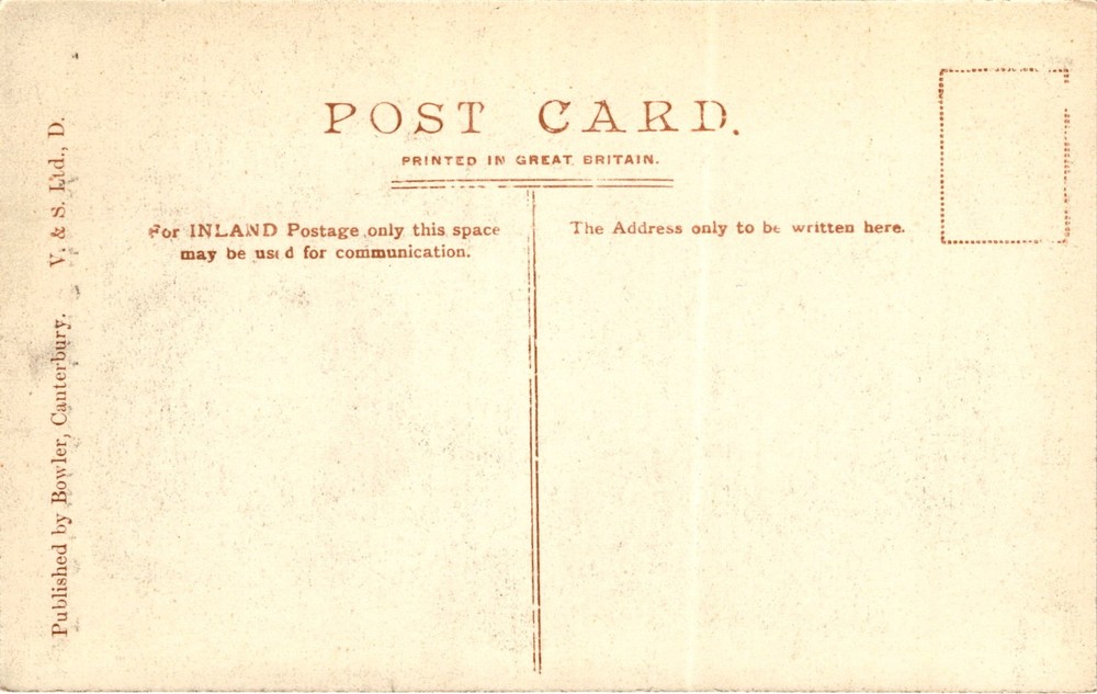 The postcard features an image of The Gateway at Canterbury Cathedral. The cathedral is a historic Christian place of worship located in Canterbury, Kent, England. It is one of the oldest and most famous Christian structures in England and forms part of a World Heritage Site.