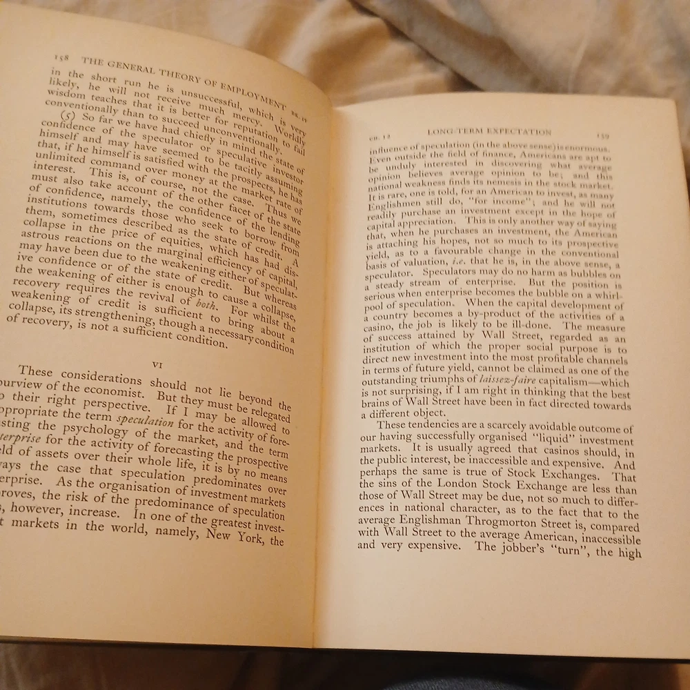The product is a first edition hardcover book titled "The General Theory of Employment, Interest, and Money" by John Maynard Keynes, published by Harcourt Brace and Company in 1936. The book was printed in the UK with British sheets and is a valuable collectible for those interested in economics, business, and government topics. This original edition provides insight into Keynes' groundbreaking theories on macroeconomic principles, making it a sought-after item for collectors and enthusiasts alike.