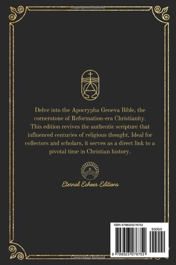 The Geneva Bible 1560 Apocrypha: The Lost Scriptures of 1560 – Complete & Large Print Edition Unlock the Secrets of the Reformation-Era with the 1560 Geneva Bible Apocrypha – Now in Large Print! Are you ready to journey through the profound scriptures that shaped Reformation-era Christianity? Dive into the 1560 Geneva Bible Apocrypha , a treasure trove of the 'lost' texts once excluded from the canonical Bible. This meticulously crafted, large-print edition is designed for both scholars and enthusiasts seeking an authentic connection to historical truths. Why This Edition is a Must-Have: Unparalleled Authenticity : Experience the scriptures as early reformists did, with all texts preserved in their original form, delivering a truly authentic biblical experience. Enhanced Readability : Enjoy the ease of reading through the scriptures without strain, thanks to the large print format, making it perfect for extended study sessions or leisurely reading. Complete Collection : Gain unprecedented access to the complete texts omitted from the standard 1560 Geneva Bible. This comprehensive collection is essential for anyone looking to deeply understand the breadth of biblical scholarship. Scholarly and Insightful : Immerse yourself in scholarly research that offers profound cultural insights, making it an invaluable resource for those who cherish depth and historical accuracy. Preservation of Heritage : Connect with a pivotal piece of religious history that not only preserves but also revitalizes interest in crucial biblical texts. Transform Your Understanding of Christianity Perfect for personal reflection, academic study, or as a thoughtful gift, it promises to enrich your understanding of Christianity's roots and its lasting impact. Don’t Miss Out on This Masterpiece of Religious Scholarship! Embark on a journey back to the core of Christian heritage Click 'Add to Cart' now and own a pivotal piece of history that brings the past into a profound and meaningful present. (Item does not ship to Miami&Doral, FL), have any problem please contact us !