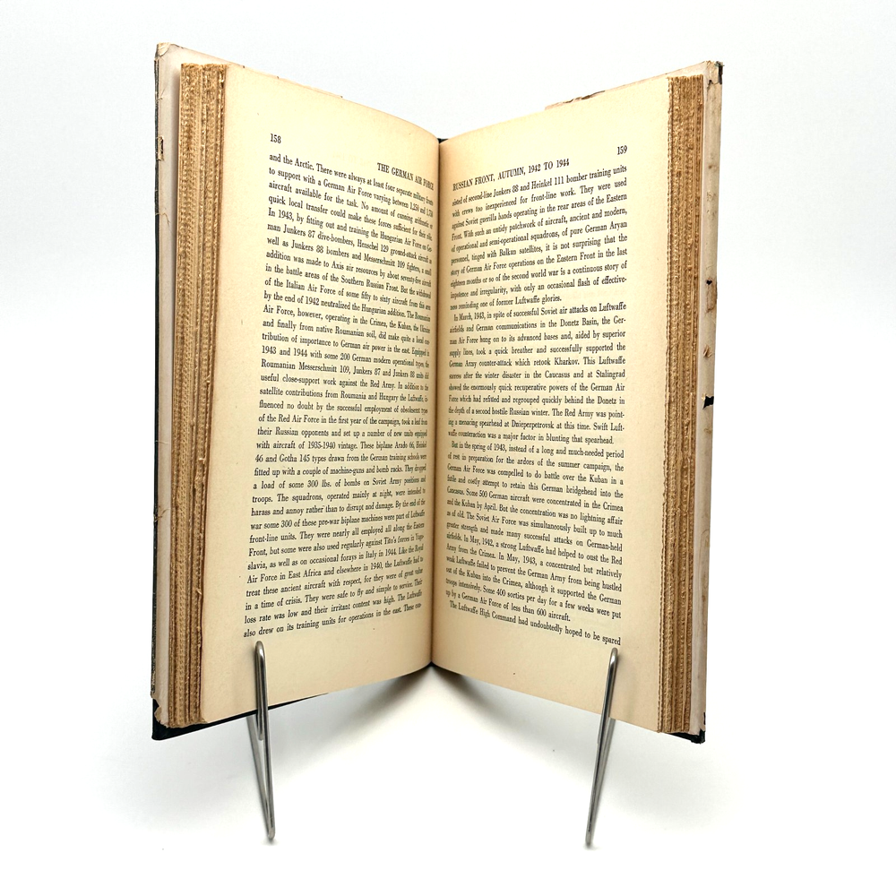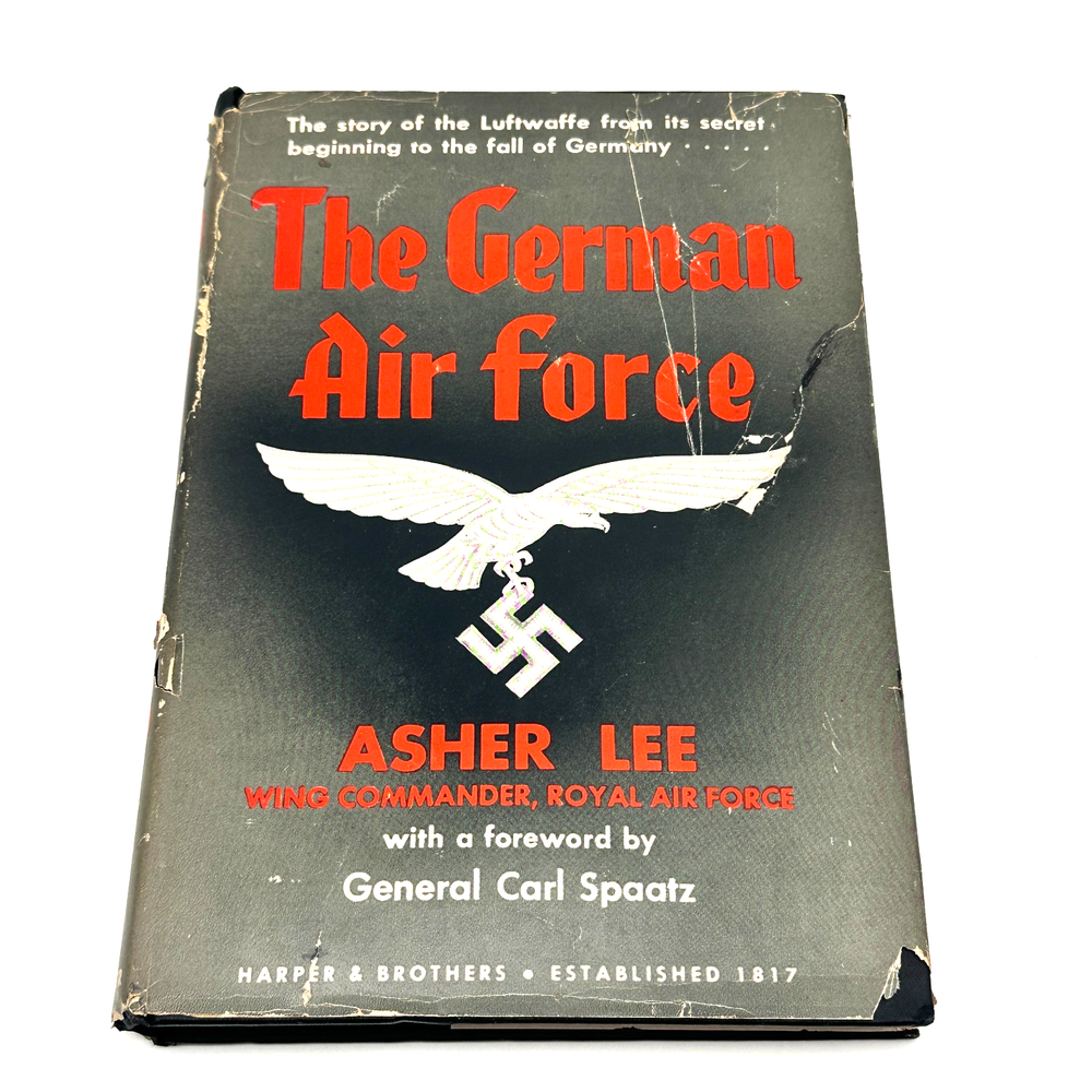 A firsthand postwar examination of the German Luftwaffe written by Royal Air Force Wing Commander Asher Lee, one of the Allied intelligence officers who knew the enemy air force in detail. Featuring a foreword by General Carl Spaatz, this volume traces the Luftwaffe from its secret origins through its expansion, strategic failures, and ultimate collapse during World War II. Published immediately after the war, this book reflects early Allied analysis before later revisionist histories, making it especially desirable to collectors of WWII aviation and military intelligence literature. A classic reference with original dust jacket, increasingly scarce in any complete form.