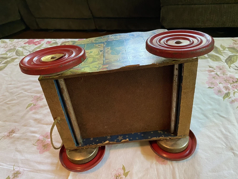 The Gong Bell Co. pull toy lions circus wagon, very nice vintage condition